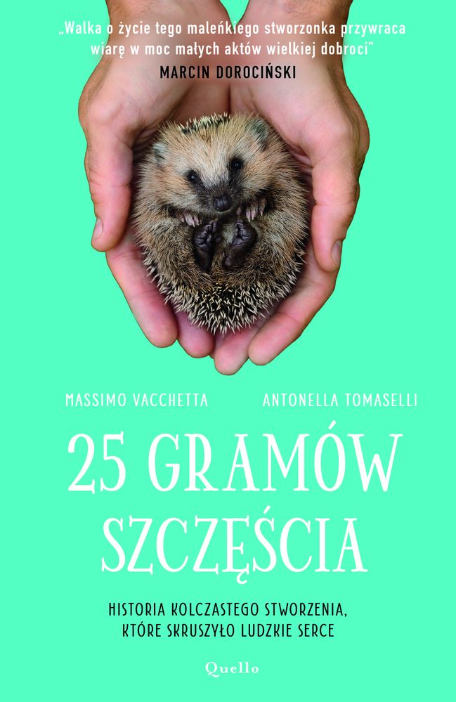 Walka o życie tego maleńkiego stworzonka przywraca wiarę w moc małych aktów wielkiej dobroci. MARCIN DOROCIŃSKI „25 gramów szczęścia” to tysiąc ton miłości! Miłości przeniesionej na karty książki męską ręką. Nie pamiętam już, kiedy płakałam, czytając. Tu płakałam ze wzruszenia prawie od pierwszej do ostatniej strony. Dziękuję, panie Massimo, kolego po fachu. Teraz czuję, że nie jestem sama. DOROTA SUMIŃSKA Historia kolczastego stworzenia, które skruszyło ludzkie serce Osierocony przez matkę kilkudniowy jeż zostaje przyniesiony do kliniki weterynaryjnej. Waży zaledwie 25 gramów. Głodny i mocno wyziębiony, jest bliski śmierci.Kiedy weterynarz Massimo Vacchetta zaczyna zajmować się małym pacjentem, rodzi się między nimi specjalna więź. Lekarz poświęca każdą chwilę, by uratować kolczaste stworzenie przed pewną śmiercią. Ciekawska i figlarna samiczka jeża, którą Massimo nazywa Ninną, w końcu odzyskuje siły i stopniowo wywraca życie weterynarza do góry nogami.Czy przywiązany do zwierzątka weterynarz będzie potrafił wypuścić je na wolność? Nie od początku Massimo zdaje sobie sprawę z tego, że to dopiero początek jego przygody z jeżami.PATRONATY:Ośrodek Rehabilitacji Jeży w Kłodzku – „Jerzy dla Jeży”, Fundacja Przytul Jeża, Jeżurkowo Ośrodek Rehabilitacji Zwierząt, Karmimy Psiaki i Leśne Brak recenzjix