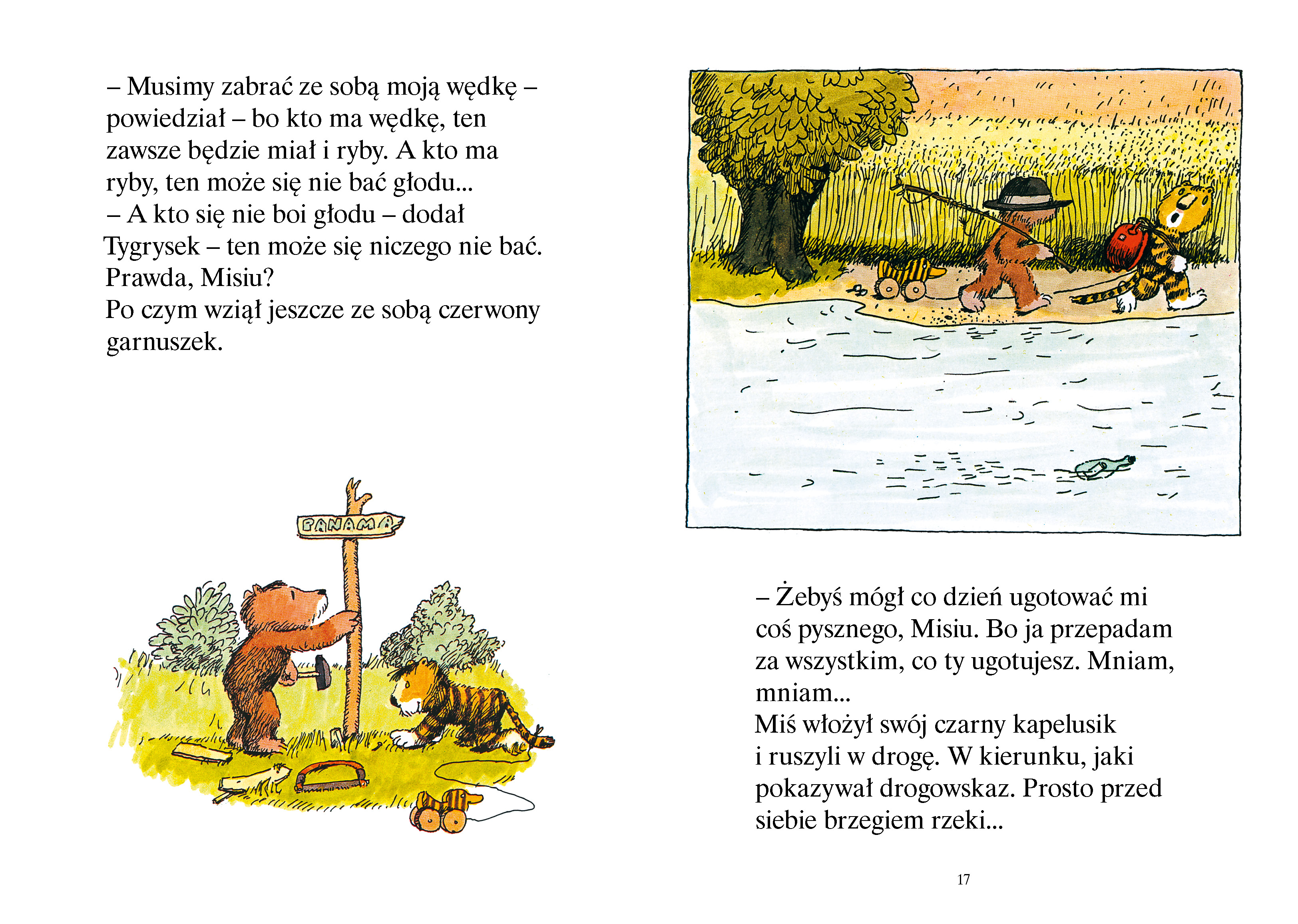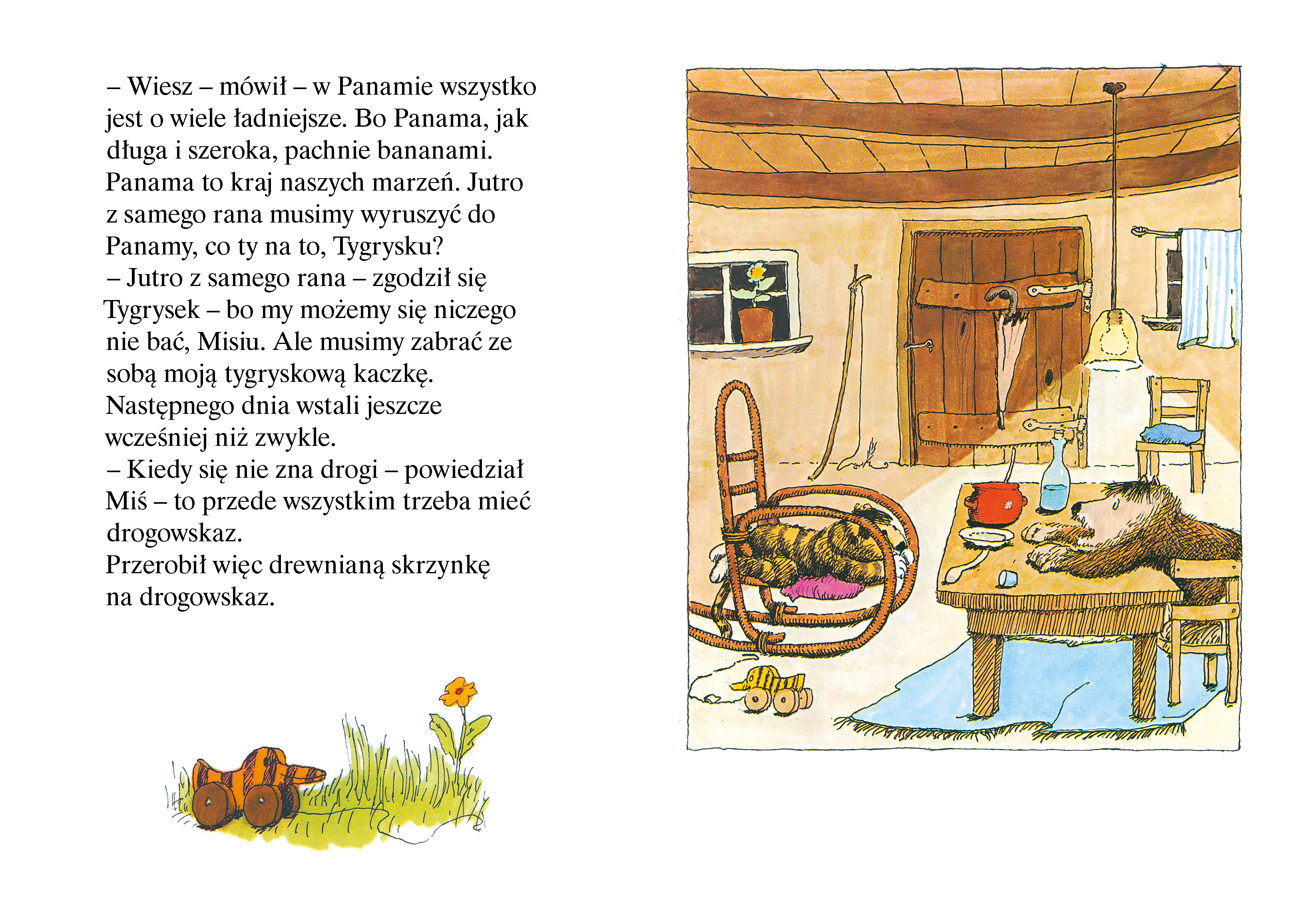 Skrzynka przypłynęła rzeką prosto z pachnącej bananami Panamy. A Panama to kraj marzeń. Kraj marzeń wart jest zaś tego, by go odszukać. Szczególnie, gdy razem jest się silnym jak niedźwiedź i odważnym jak tygrys. Misiowi i Tygryskowi nie przeszkodzą brak drogowskazów, głód, deszcz ani kiepskie rady Wrony. Bo gdy ma się przyjaciela, można się niczego nie bać! Czy warto wędrować tyle dni w poszukiwaniu Panamy? Czego można się dowiedzieć o szczęściu, moknąc w czasie ulewy i głodując, gdy w pobliżu nie ma żadnej rzeki pełnej ryb? Ach, jak cudowna jest ta historia! Brak recenzjix