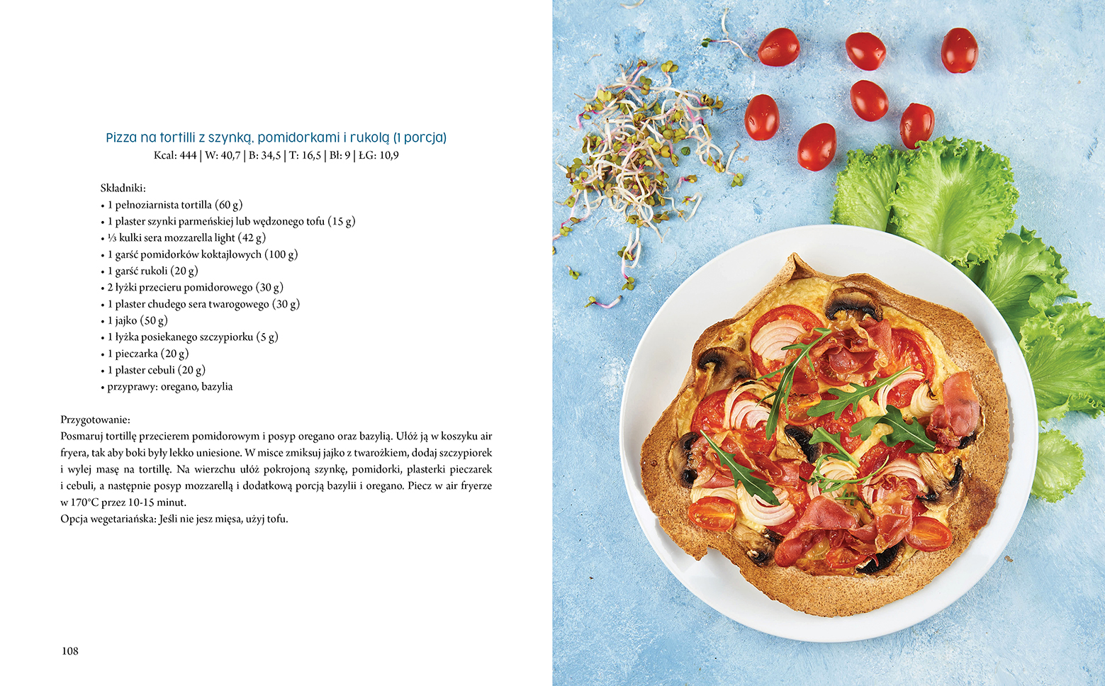 burgery drobiowe na spodach z pieczarek portobello, tarta po dubajsku z pistacjami, fit deser Rafaello z chrupiącymi ciasteczkami kokosowymi, pieczony kurczak z fetą, jabłkiem i batatem, frittata z warzywami, płatkami owsianymi i fetą, krewetki z czosnkiem, pieczonymi pomidorkami koktajlowymi i makaronem sojowym.Odkryj nowe możliwości swojego air fryera.