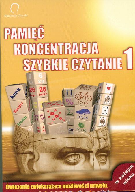 Zestaw trzech multimedialnych programów z serii Akademia Umysłu(R): ♦ PAMIĘĆ ♦ KONCENTRACJA ♦ SZYBKIE CZYTANIE W zestawie znajdziesz ponad 40 innowacyjnych ćwiczeń rozwijających zdolności umysłowe. Ćwiczenia mają formę ciekawych i różnorodnych gier, które zmobilizują Twój umysł do aktywności! Ze względu na bogatą zawartość i korzystną cenę, zakup trzech programów w zestawie, stanowi bardzo atrakcyjną propozycję. Dzięki zastosowaniu aż 10 poziomów trudności oraz dodatkowo wprowadzania indywidualnych ustawień do każdego ćwiczenia, z programów mogą korzystać zarówno dzieci, młodzież, jak i osoby aktywne zawodowo oraz seniorzy. Użytkownik ma możliwość każdorazowego dostosowania trudności ćwiczenia do swoich możliwości i umiejętności . Można tego dokonać w trybie Użytkownika, gdzie zamieszczone są opcje, służące do eksperymentowania z ustawieniami tak, aby określić granice swoich możliwości. Zmieniać tu można między innymi: czas ekspozycji zadania, liczbę pokazywanych elementów, kolorów czy figur, a także skrócić lub wydłużyć czas na odpowiedź. Natomiast w trybie Nauki program notuje wyniki i ocenia postępy oraz odpowiednio dobiera intensywność i trudność ćwiczeń. W zależności od postępów użytkownika trudność rośnie, ale może też okresowo zostać zmniejszona, gdy obniży się poziom wyników. Można tez ćwiczyć w wariancie treningowym, w którym program notuje wyniki, ocenia postępy i zwiększa poziom trudności. Swoje wyniki można przechowywać, dzięki czemu istnieje możliwość ich porównywania na przestrzeni czasu. Atutem programu jest możliwość osiągania kolejnych poziomów trudności, co potrafi dostarczyć ćwiczącym prawdziwych emocji, zachęcając ich do systematycznych treningów umysłu. Akademia Umysłu(R) PAMIĘĆ - Program zawiera najnowsze metody, techniki i systemy doskonalenia pamięci. Znajdziesz tu ćwiczenia, które zwiększają Twoją zdolność zapamiętywania: tekstów, znaków, liczb, obrazów, sytuacji. Skraca się czas potrzebny na zapamiętanie informacji. Wzrasta zdolność jej długoterminowego przechowywania. Nabyte umiejętności wykorzystujesz, aby zapamiętywać: obce słówka, numery telefonów, terminy spotkań, imiona, nazwiska i twarze, treść czytanych gazet i książek. Akademia Umysłu(R) KONCENTRACJA - Patrząc - widzieć, rejestrować, pamiętać. To cel tego programu. Dzięki treningowi postrzegania, pozbywasz się problemów z koncentracją i podzielnością uwagi, więcej widzisz i zapamiętujesz. Świat staje się bardziej wyrazisty i czytelny. Powiększa się Twoja zdolność logicznego i przestrzennego myślenia i rozwijasz swoją wyobraźnię. Widzisz więcej wokół siebie. Akademia Umysłu(R) SZYBKIE CZYTANIE - Ten program uczy jak sprawniej czytać i przyswajać teksty. Sprawniej to znaczy szybciej, a jednocześnie z lepszym zrozumieniem oraz łączeniem nowej informacji z całością posiadanej wiedzy. Nauczysz się też czytać wybiórczo, przeszukując tekst celem znalezienia konkretnej informacji. Jest to niezwykle użyteczne np. przy przeglądaniu Internetu. Łącząc techniki szybkiego czytania i zapamiętywania wchodzisz na niedostępne dotąd wyżyny wiedzy. Zestaw trzech programów z serii Akademia Umysłu(R) to: ♦ aż 41 ciekawych ćwiczeń i setki opcji - nigdy się nie znudzisz ♦ 10 poziomów trudności - dostosujesz trening do swoich potrzeb i umiejętności ♦ tryb nauki - program ocenia postępy, dobiera intensywność i trudność ćwiczeń ♦ intuicyjny i atrakcyjny interfejs - łatwa i przyjemna obsługa programu ♦ nieograniczona liczba użytkowników - cała rodzina może ćwiczyć i zapisywać swoje wyniki Dotychczas ukazały się dwie niezależne edycje tych programów. Są równorzędne pod względem trudności. Nie jest ważne, od której części zaczniesz. Ćwiczenia są nie tylko skuteczne, ale są też ciekawą i przyjemną formą spędzania czasu. Programy stanowią także wspaniały pomysł na prezent dla bliskich osób!