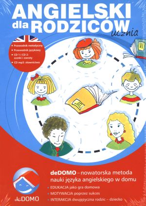 Masz dziecko w wieku 7-10 lat? Znasz choć trochę angielski? Chcesz pomóc swojemu dziecku w nauce języka, a nie wiesz jak? Angielski metodą deDOMO jest właśnie dla Ciebie! Angielski dla rodziców przedszkolaka to pierwszy kompletny zestaw do wspólnej nauki języka dla całej rodziny. Oparty jest na nowatorskiej metodzie nauki w domu. deDOMO to: edukacja, motywacja i interakcja rodzic dziecko.W skład pakietu wchodzą 2 książki i 3 płyty:2 Książki:Angielski dla rodziców. Przewodnik metodyczny.Angielski dla rodziców ucznia. Przewodnik językowy.3 płyty:2 płyt audio CD (2 godzin nagrań scenek i zwrotów)1 płyta CD mp3 (185 minut nagrań słownictwa) 1 płyta CD mp3 (185 minut nagrań słownictwa).