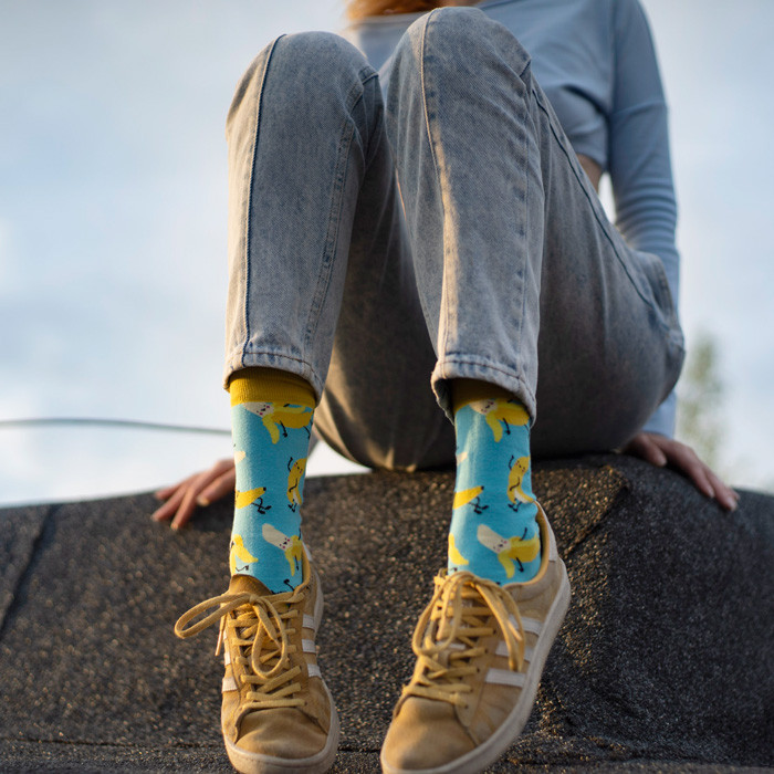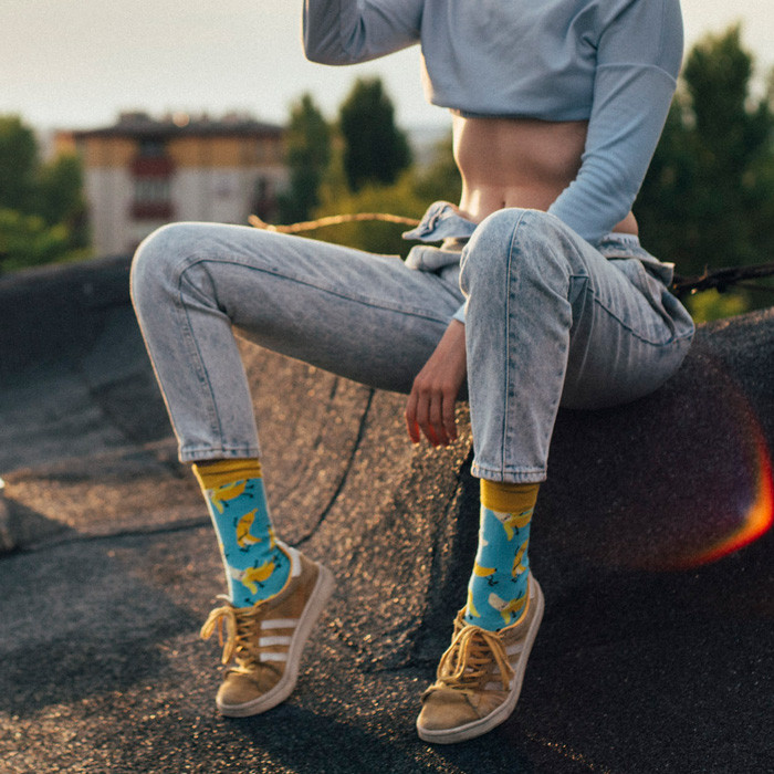 Przepiękne i prześmieszne skarpetki w ocenzurowane banany, rozbawią każdego kto je założy i kto je zobaczy - dlatego także nadają się idealnie na prezent.