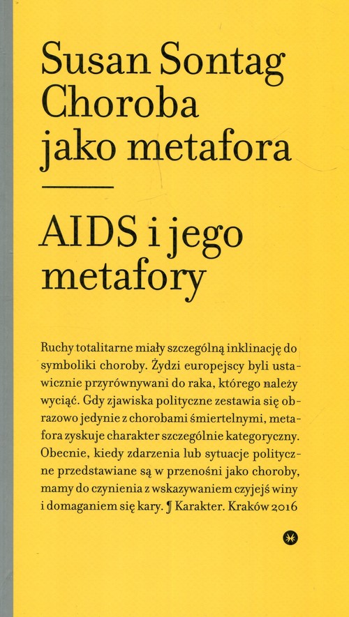 Dwa słynne eseje, które weszły do kanonu humanistyki. Analizując źródła naukowe i utwory literackie od antyku po czasy współczesne (odwołując się choćby do Homera, Baudelaire'a, Manna, Joyce'a czy Audena) Susan Sontag rekonstruuje mitologię gruźlicy i choroby nowotworowej. Pokazuje przy tym sposoby, w jakie społeczeństwo stygmatyzuje chorych i demistyfikuje ideologiczne fantazmaty, które zmierzają do demonizacji niektórych chorób. Drugi esej, napisany pod koniec lat 80., jest pionierską analizą AIDS i społecznych wyobrażeń, jakie towarzyszyły pojawieniu się tej choroby.