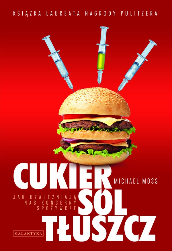 Jesteśmy uzależnieni od soli, cukru i tłuszczu. Najwięksi producenci żywności używają tych trzech prostych składników do tworzenia jak najbardziej kuszących produktów jak najmniejszym kosztem.W książce Cukier,sól,tłuszcz, wyróżniony Nagrodą Pulitzera dziennikarz śledczy Michael Moss opisuje, w jaki sposób doszło do takiej sytuacji. Jego sugestywna, barwna opowieść, przeplatana jest historiami zaczerpniętymi z poczynań niektórych spośród najbardziej znanych (i dochodowych) przedsiębiorstw i marek ostatniego półwiecza. Drobiazgowe i wnikliwe badania mocno osadzają tę pozycję w realiach i pozwalają spojrzeć na problem z innej perspektywy.To otwierająca oczy, zdumiewająca podróż za kulisy świata producentów wysoko przetworzonej żywności. Po jej odbyciu możesz zmienić swoje nawyki żywieniowe. Na zawsze.Czy jesteś gotowy na poznanie prawdy o tym, co wkładasz do koszyka?Żywy, błyskotliwy reportaż Mossa nie pozostaje obojętny na przyjemności płynące z konsumpcji śmieciowego jedzenia - ociekającego apetycznym tłuszczykiem i wyzwalającego w mózgu uczucie przyjemności - a zarazem bezlitośnie analizuje stojące za jego produkcją manipulacje, mające tylko jeden cel: zyski. Bardzo smakowite, a zarazem skręcające kiszki spojrzenie na żywność, którą kochamy, a jednocześnie jej nienawidzimy. ,,Publishers Weekly