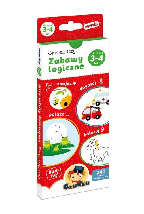 Czas ruszyć głową i ręką! Kompaktowa edukacyjna książeczka dla dzieci w wieku od 3 lat zawiera 240 wciągających zabaw. Każda strona składa się z 2 części: z informacją, zagadką lub zadaniem i fragmentu do rysowania i zakreślania, który można oderwać dzięki perforacji, aby cieszyć się poręczną książeczką z ciekawostkami. Wyjątkowa cecha: mała formatem, wielka treścią książeczka bawi, uczy, inspiruje. Bawcie się i doskonalcie różne umiejętności. CzuCzu uczy Zabawy logiczne dla dzieci w wieku 3-4 to poręczna książeczka pełna różnorodnych zabaw. Możecie ją zawsze mieć przy sobie. Bawcie się, doskonaląc umiejętność logicznego myślenia, małą motorykę i rozwijając wyobraźnię: