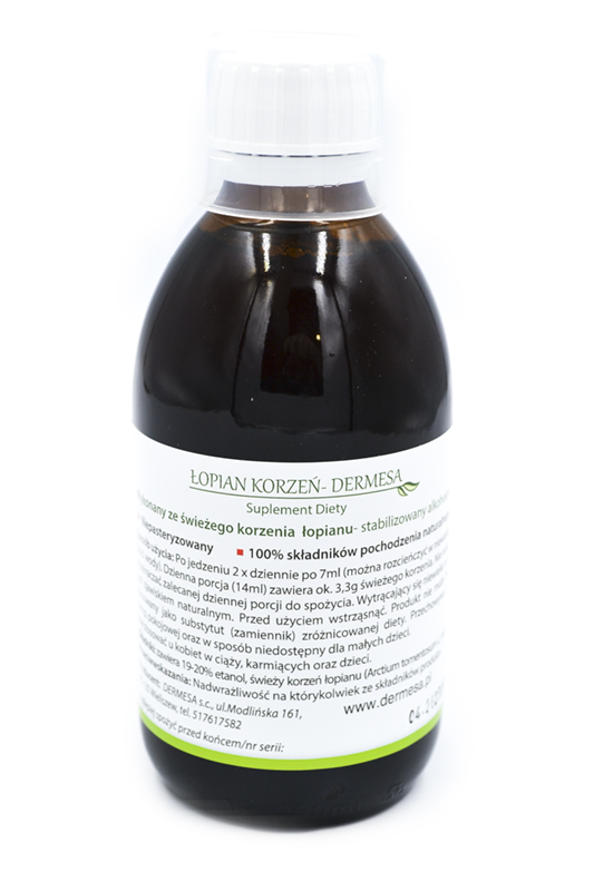 Łopian korzeń 250 ml - stabilizowany alkoholem zawiera 19-20% etanol, świeży korzeń łopianu (Arctium tomentosum L.,radix)