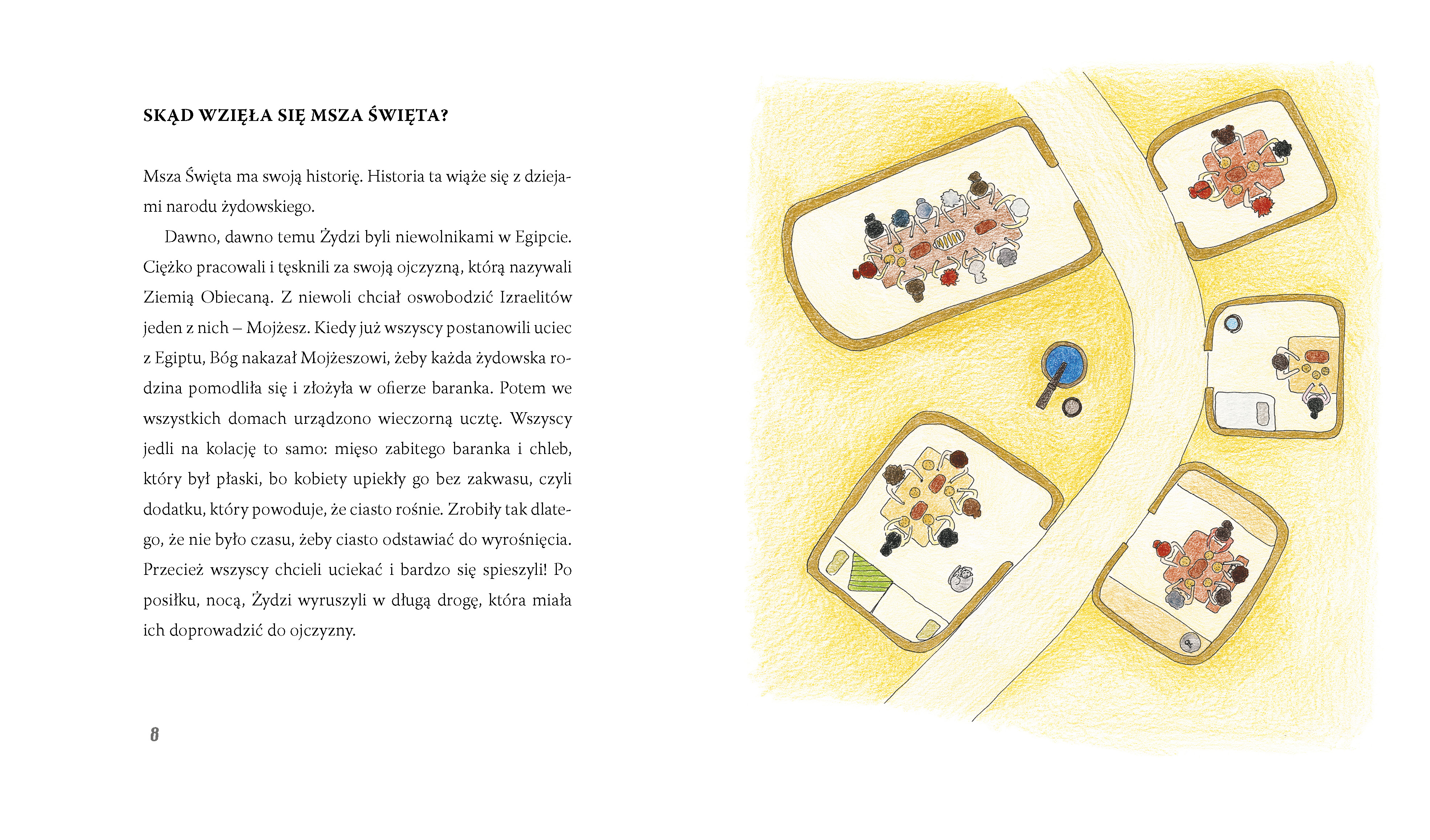 a rodzice do pracy. Wszyscy mogą odpocząć, mają czas na spacer i odwiedziny u dziadków. W każdą niedzielę dzieje się coś jeszcze. Pan Bóg zaprasza nas na spotkanie! Dlatego idziemy do kościoła na Mszę Świętą. Ale czasem ziewamy w kościele, bo nie rozumiemy, co się dzieje podczas Mszy. Warto to zmienić! Nigdy już nie będziesz się nudzić na Mszy Świętej, jeśli poznasz jej tajemnice. Uwaga! Idziemy do kościoła! Brak recenzjix