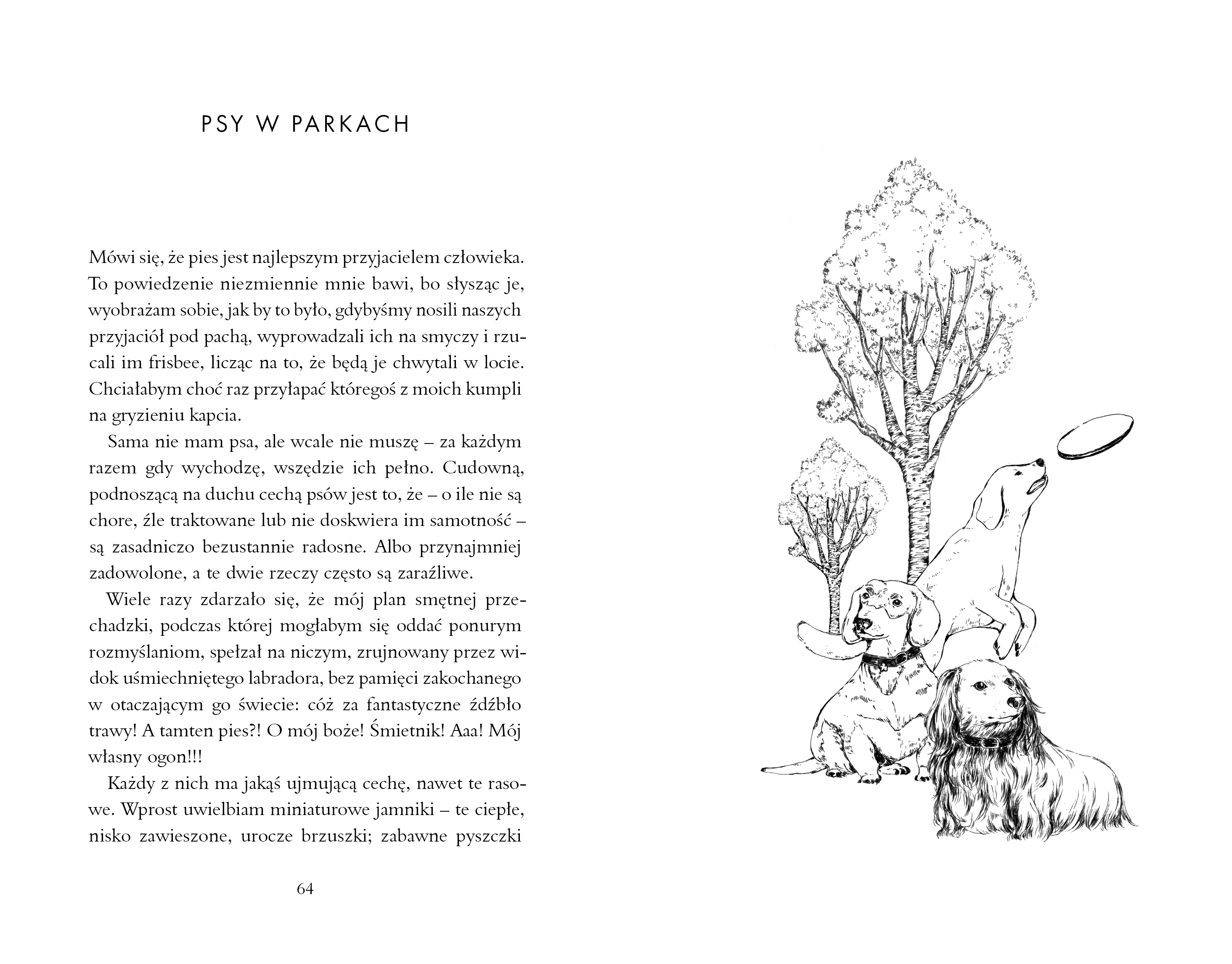 Świeża pościel. Parujący kubek herbaty. Ulice miasta opustoszałe w długi weekend. Przeczekiwanie deszczu. Pocałunki. Szelest jesiennych liści. Ustawianie statusu „poza biurem“. A TOBIE CO SPRAWIA PRZYJEMNOŚĆ? Hannah Jane Parkinson, felietonistka „Guardiana“, to ekspertka od smakowania życia. Jej zbiór krótkich, błyskotliwych tekstów jest jak pudełko czekoladek – a każda z nich okazuje się cudowną, bezpretensjonalną lekcja tego, jak czerpać przyjemność z najzwyklejszych rzeczy. Ta książka jest jak balsam dla duszy – pięknie napisana, czuła, mądra, zabawna i pełna ciepła. Miejcie ją zawsze przy sobie, by sięgać po nią, gdy tylko będziecie potrzebowali poczuć, że świat jest lepszym miejscem. Nigella Lawson Uwielbiam to, jak pisze Parkinson – zawsze zabawnie, szczerze i z dużą wnikliwością. David Nicholls Parkinson ma dar patrzenia na codzienne sprawy zupełnie świeżym okiem. Jej książka to idealna lektura na każdy dzień. Jojo Moyes