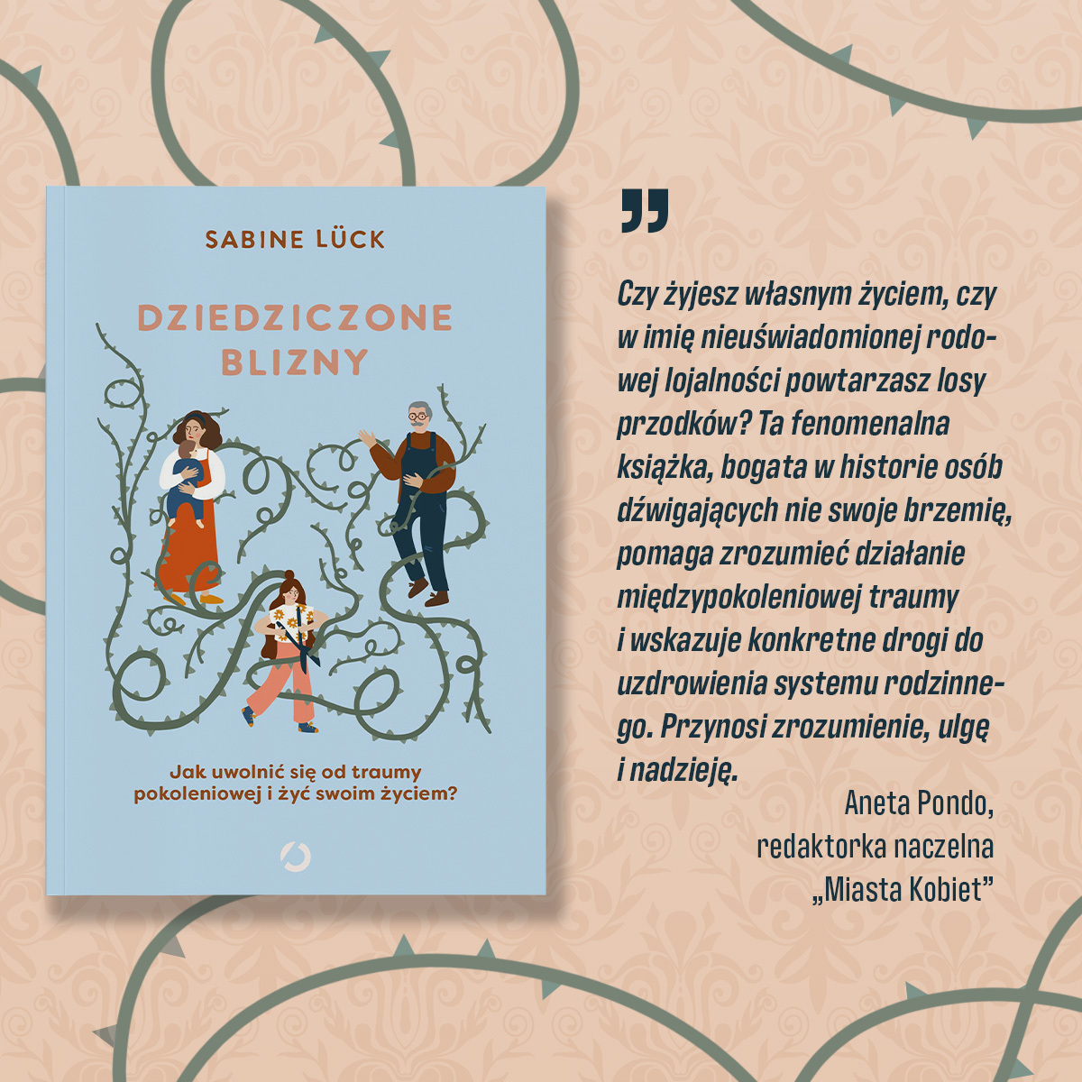 Często nie zdajemy sobie sprawy z tego, że przodkowie obarczyli nas swoimi zmartwieniami, troskami i przeżyciami, które wpływają na to, jak traktujemy siebie i innych. Niektóre blizny „pokrywają” naszą rodzinę od kilku pokoleń i niezależnie od podejmowanych przez nas działań, nie chcą zniknąć. Posłuchaj swojego wewnętrznego głosu i poznaj historię swojej rodziny. Zrozum ją i zaakceptuj, a następnie uwolnij się od traum, które oplatają twoje życie niczym korzenie. Sabine Lück jest psychoterapeutką i specjalistką od radzenia sobie z traumami pokoleniowymi. Opracowała unikalny, kompleksowy program samoleczenia. W tym przewodniku udziela cennych wskazówek, jak poznawać historię swoich przodków. Odpowiada na pytania dotyczące dziedziczenia traum pokoleniowych i zachęca do ćwiczeń, dzięki którym zrozumiesz swoje życie. Udowadnia, że zbieranie informacji o losach rodziny jest istotne dla osobistego rozwoju. Dzięki tej książce dowiesz się, na ile to, co wydarzyło się w twojej rodzinie, definiuje ciebie. Sabine Lück jest psycholożką, psychoterapeutką dzieci i młodzieży oraz terapeutką rodzin. Prowadzi własną praktykę. W 1994 roku wraz z terapeutką Ingrid Alexander opracowała Generation Code®, innowacyjną metodę terapii traumy pokoleniowej. W 2010 roku obie terapeutki założyły Institut für Transgenerative Prozesse w Wendeburgu. Lück dzieli się swoją rozległą wiedzą na wykładach, seminariach i szkoleniach. Pomysł na tę książkę zrodził się w 2002 roku, podczas podróży do Namibii, gdzie autorka dorastała. W wieku 15 lat przeprowadziła się do Niemiec, tu mieszka i pracuje do dziś. Brak recenzjix