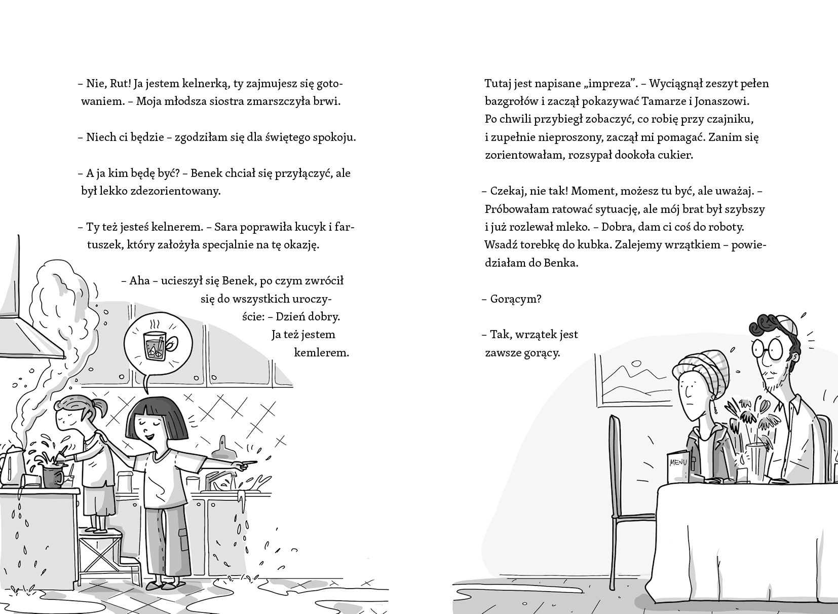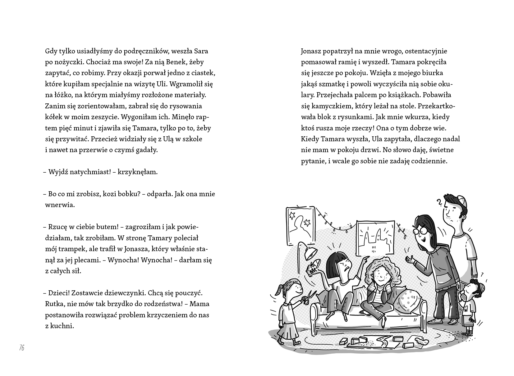 Poznajcie Rut. Rut wie już wszystko o prawdziwym życiu. Niestety dorośli nadal traktują ją jak małolatę. To prawda, że kupuje ubrania na dziale dziecięcym. I śpi z pluszowym misiem. Ale dobrze wie, jak ważne jest mieć własny pokój. Taki totalnie swój. I że najgorzej jest siedzieć w samochodzie między fotelikami rodzeństwa. Wie też całkiem sporo o tym, jak to jest być jedyną Żydówką w klasie. Obchodzić Nowy Rok we wrześniu i umierać z nudów, kiedy inni jedzą wigilijną kolację. Mieć urodziny dwa razy w roku, a jesienią całe osiem dni spędzać w szałasie. Rut marzy, żeby mieć bogatą krewną, która na pewno (w przeciwieństwie do mamy) kupiłaby jej upragnione perfumy. I o tym, żeby nie być tak nieśmiałą. Ale najbardziej pragnie wielkiej roli w szkolnym przedstawieniu. Niestety! Na pierwszym spotkaniu kółka teatralnego spada z krzesła. Będzie musiała podbić świat, grając rolę lisa! A co na to wszystko rodzice? Jak to oni. Powiedzą, żeby się nie przejmować i że tyle naszego, co się naśmiejemy. Ale co oni tam wiedzą… Miriam (Maria) Synger – Żydówka, Polka, patriotka, matka pięciorga dzieci, feministka, kobieta silna i wrażliwa. Córka pisarki, wnuczka pisarki i prawnuczka pisarki. Autorka bestsellerowej książki „Jestem Żydówką”, w której opowiada o żydowskich tradycjach, kulturze, zwyczajach i o codziennym życiu żydowskiej rodziny w Polsce. „Dziennik Rut” jest jej pierwszą książką dla dzieci. FRAGMENTY KSIĄŻKI: WTOREK, 14 WRZEŚNIA Jutro Jom Kippur, czyli Sądny Dzień. To najważniejsze święto w żydowskim kalendarzu. Idealny czas na przepraszanie. I na przebaczanie. Świetnie się składa. Ja przeproszę mamę, że zepsułam i zgubiłam naszyjnik. A mama mi wybaczy. I wszystko będzie dobrze. Powoli podeszłam do mamy. Wcale mi się nie spieszyło do tej dramatycznej sceny rozrywającej serce. – Hghm – chrząknęłam cicho. – O, hej, Rut, co tam? Chcesz trochę kaszy gryczanej? Właśnie skończyłam robić. – Ładnie pachnie. A co to to białe? – zapytałam. Przecież przed wyznaniem win można pogawędzić o obiedzie. – A to czosnek. Miał być jeden ząbek dla smaku. Ale się zamyśliłam i posiekałam całą główkę – powiedziała i oblizała łyżkę – Oj wej! Ale siekiera. No ładnie. Będziemy zionąć ogniem jak smok wawelski. Trudno. Jak tam, Rucisława? – zabrzmiało jak chęć nawiązania kontaktu. Czyli idealny moment, żeby powiedzieć, że jest źle. – Wszystko dobrze – wyjąkałam. (…) NIEDZIELA, 19 WRZEŚNIA Po południu dumna Sara sprowadziła do ogrodu okoliczne dzieciaki sztuk pięć: Tadka i Felka, czyli braci spod numeru 22, Malinę i Miśka – rodzeństwo, które mieszka naprzeciwko nas – oraz ich kuzynkę Karolinkę. Moja siostra chciała im wszystkim pokazać naszą budowlę. Wśród naszych sąsiadów nie ma Żydów, więc zawsze przy takich okazjach pojawia się mnóstwo pytań, na które Sara poważnie i z lubością odpowiada. Brak recenzjix