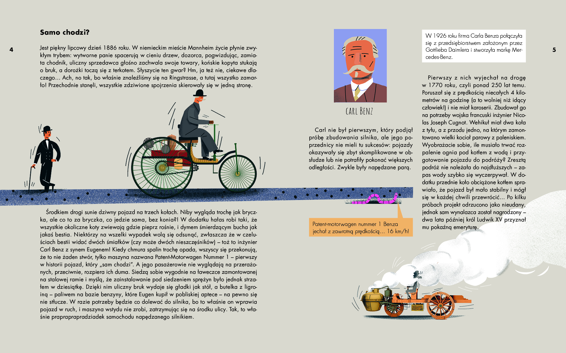 Czy na masce samochodu da się usmażyć jajecznicę? Dlaczego moc silnika podajemy w koniach mechanicznych, a nie na przykład jamnikach? Gdzie można dostać mandat za jazdę czarnym autem w niedzielę, a gdzie trzeba ustąpić pierwszeństwa strusiom? I w końcu jak to się w ogóle dzieje, że samochód jeździ?!