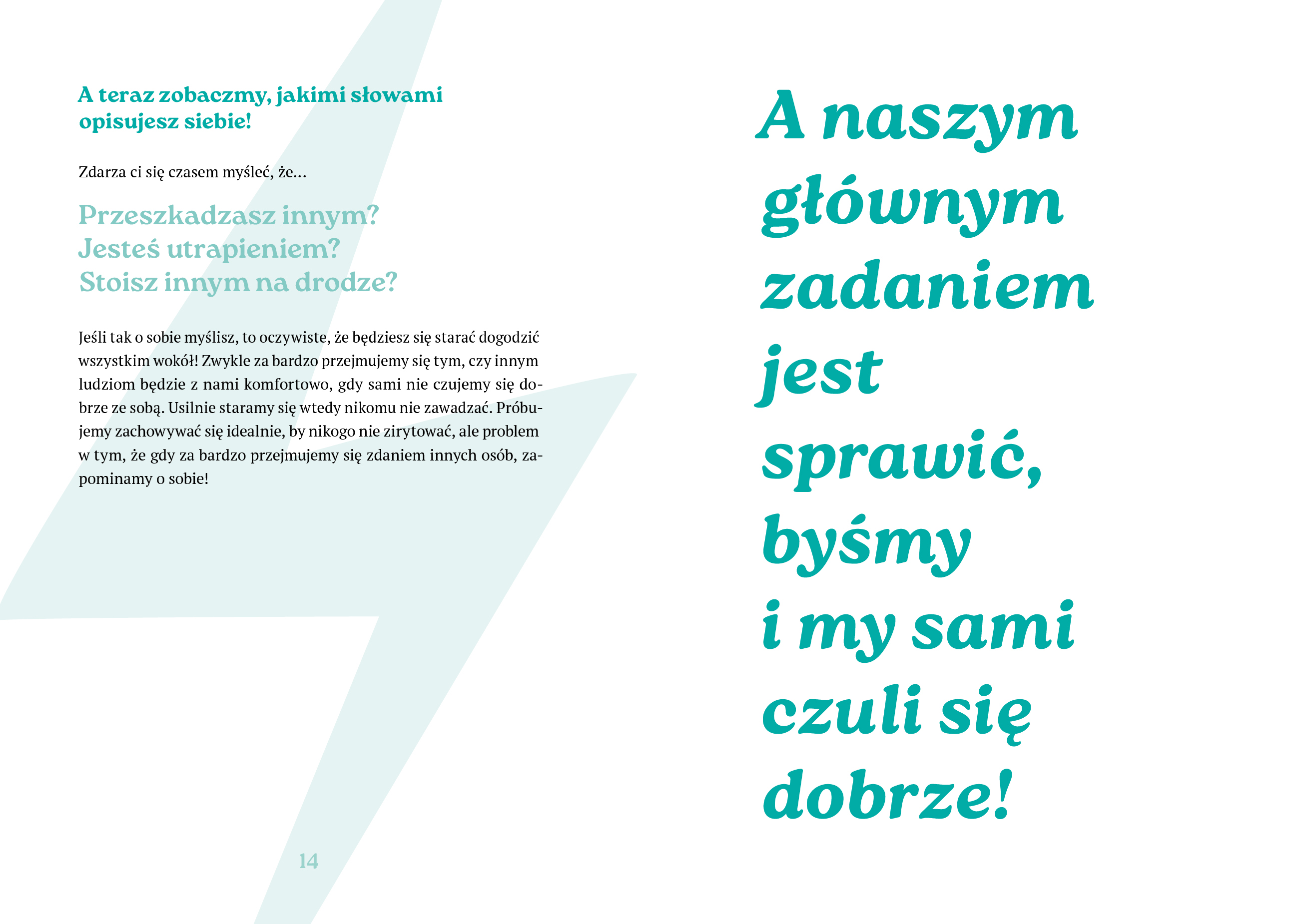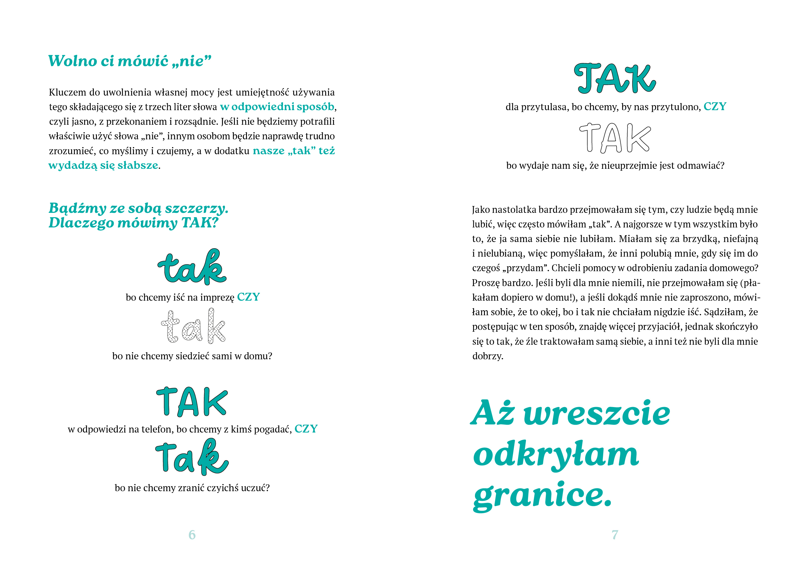 NIE jest ważniejsze niż TAK. Słowo NIE ma SUPER MOC. Daje siłę. Uczy pewności siebie. Pozwala w pełni decydować. To nie słowo TAK uczy dorosłości, ale właśnie: NIE. Naucz się DOBRZE mówić NIE! Jak powiedzieć NIE kolegom, którzy wyciągają cię na wagary? Jak odmówić dawania buziaków cioci, której nie lubisz? Jak nie zgadzać się na udział w dodatkowych zajęciach pozaszkolnych, na które nie masz czasu? Jak sprzeciwić się rodzicom, żeby ich nie wkurzyć? Jak mówić NIE w internecie? Odkryj, że mówienie NIE jest SUPER. Naucz się dobrze go używać i poznaj jego supersiłę. Brak recenzjix