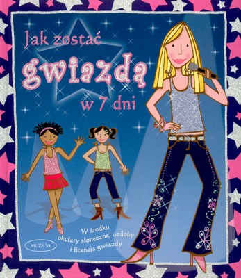 · niezbędny poradnik dla dziewczynek w wieku 5-10 lat, które chcą zostać gwiazdą · tygodniowy plan, dzięki któremu poznasz tajemnice sztuki śpiewania, aktorstwa, mody i tańca · specjalna tekturowa kieszonka na trzeciej stronie okładki zawiera: lusterko, szablon gwiazdy, licencję gwiazdy, migoczące okulary słoneczne, nalepki z brokatem, ozdoby do przyklejenia W poradniku, oprócz gotowych pomysłów na to, jak zostać gwiazdą, można znaleźć mnóstwo świetnych rozwiązań, jak urządzić wspaniały pokaz młodych talentów oraz jak wykorzystać akcesoria niezbędne do przeprowadzenia udanej transformacji.