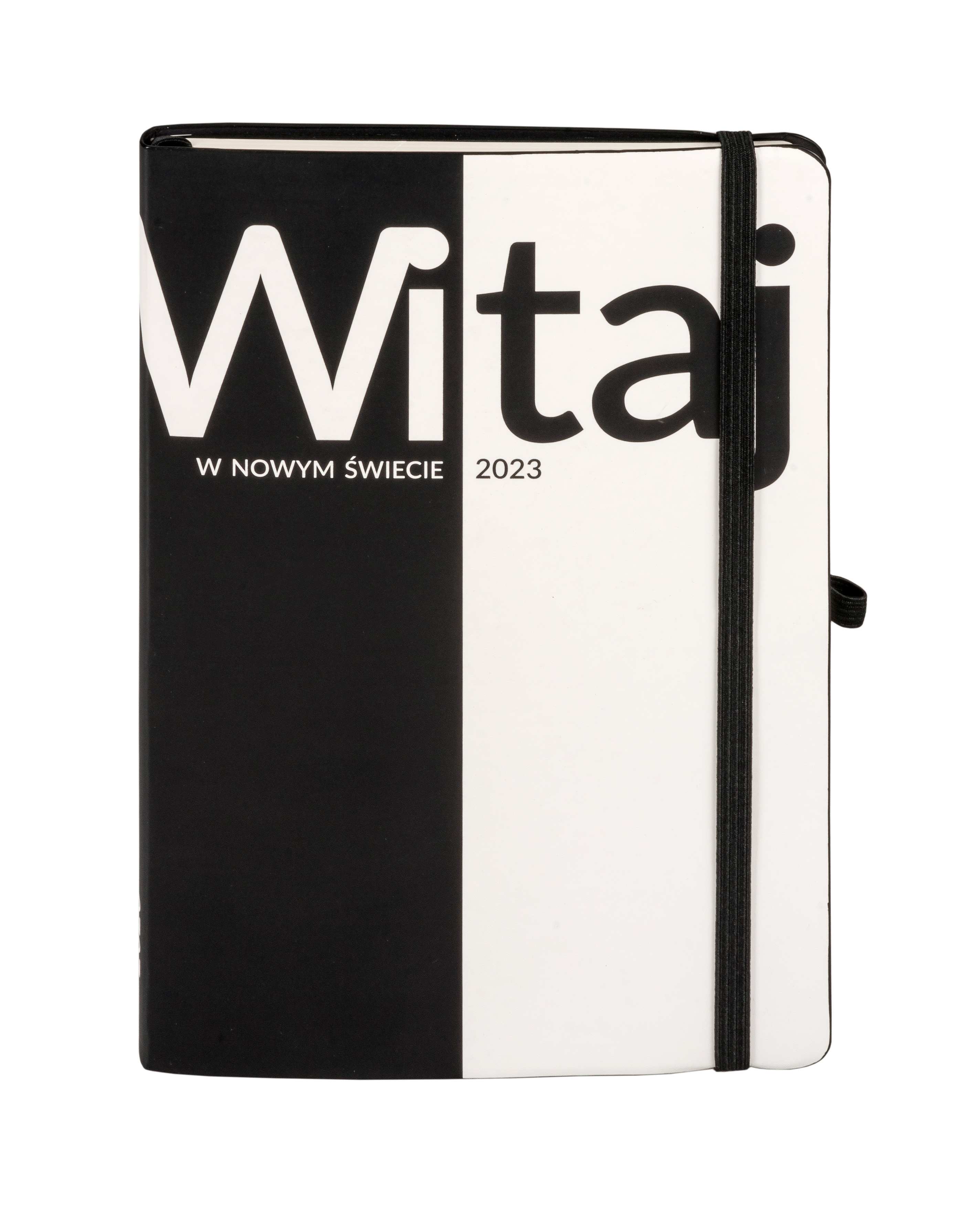Kolekcja: Witaj Format: A5 Wymiary okładki: 210x145 mm Układ: tydzień do wglądu Ilość stron: 144 Oprawa: miękka Materiał: skóra ekologiczna z nadrukiem Gramatura papieru: 80g Kolor papieru: off white Dodatki: plan roku 2023, ważne wydarzenia, skorowidz adresowy, notatki Pionowa gumka zamykająca: czarna Wstążka: czarna Gumka na długopis: czarna Zaokrąglone rogi: tak Wyklejka: czarna Brak recenzjix