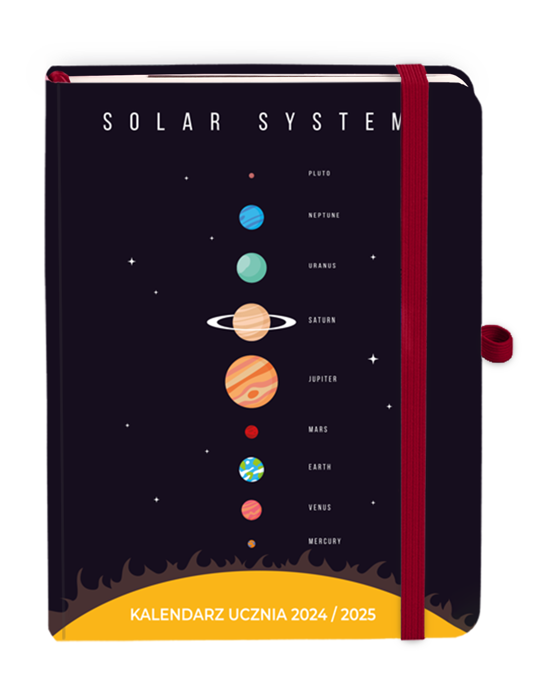 Dodatki: ważne daty, plan zajęć, tabela ocen, prace domowe, sprawdziany, zebrania z rodzicami, wycieczki, zajęcia pozalekcyjne, wydatki, lektury, ważne wydarzenia, skorowidz adresowy, notatki, 4 malowanki
