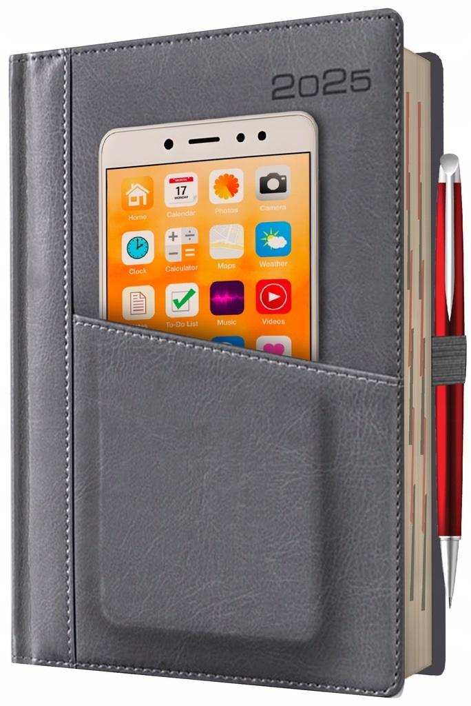 KALENDARZ KSIĄŻKOWY PRAKTYCZNY NA 2025 ROK FORMAT: A5 DZIENNY Wykończenie: PRAKTYCZNA KIESZONKA na TELEFON, NOTATKI, DOKUMENTY, itp. PRAKTYCZNA GUMKA na Długopis Zakładka w kolorze okleiny Wymiary: 21 cm x 15 cm, format A5 Registry: Drukowane Układ: dzień na stronie (sobota z niedzielą są na jednej stronie) Podział godzinowy dni roboczych 6:00-18:00 Imieniny, święta Wschody i zachody słońca Ilość stron: 324 stron Kalendarium: skrócone 3-letnie kalendarium, kalendarium dzienne (PL, GB, D) z układem skróconego rocznego, stronę na notatki, imieniny, święta, Zodiak, wschody i zachody Słońca, fazy Księżyca, numeracja tygodni, kolorowa mapa Polski Termoprzebarwialna oprawa na tekturze z gąbką umożliwia wykonanie tłoczenia matrycą, personalizacji laserowej i nadruków. Brak recenzjix