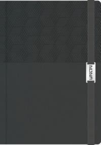 Kalendarz 2023 książkowy A5 Edica z tasiemką, grafitową gumką okalającą z metalowym, srebrnym datownikiem oraz kieszonką prostokątną 10x6cm. Dzień na jednej stronie. Oprawa twarda, piankowana z grafitową okładką. Okładka tłoczona w geometryczne wzory. Papier biały FSC o gramaturze 70g/m2.