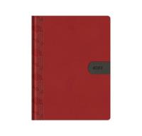 Kalendarz 2023 książkowy B5 Edica z tasiemką, grafitową zapinką magnetyczną z datownikiem oraz kieszonką trójkątną 10x10cm. Tydzień na dwóch stronach. Oprawa twarda, piankowana z wiśniową okładką. Okładka tłoczona w geometryczne wzory. Papier ecru FSC o gramaturze 80g/m2.