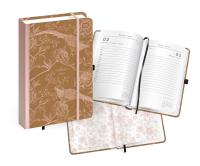 Matowa okładka z efektownymi, błyszczącymi detalami. W środku kolorowa wyklejka. Twarda oprawa skutecznie chroni zawartość przed zniszczeniem. Elastyczna gumka chroni luźne notatki przed wypadnięciem. Kalendarz w układzie 1 dzień na stronie z podziałem na godziny pozwala na szczegółowe zaplanowanie każdego dnia. Wyposażony w praktyczne dodatki: tasiemkę do zaznaczania strony i pętelkę na długopis. W środku także: adresówka, praktyczne kalendarium oraz miejsce na dodatkowe notatki. Specyfikacja: