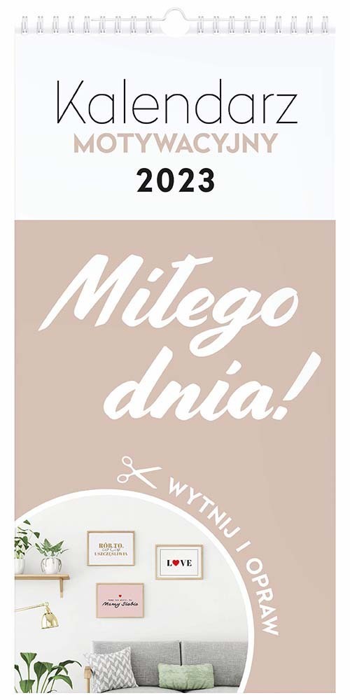 Kalendarz ścienny na spirali o wymiarach 22 x 46 cm. Kalendarium w układzie miesięcznym. Przy każdym dniu miejsce na krótką notatkę. Zaznaczone najważniejsze daty i święta. Ciekawa i inspirująca grafika motywacyjna z hasłem na każdy miesiąc. Po zużyciu kalendarza grafiki można wyciąć i oprawić. Brak recenzjix