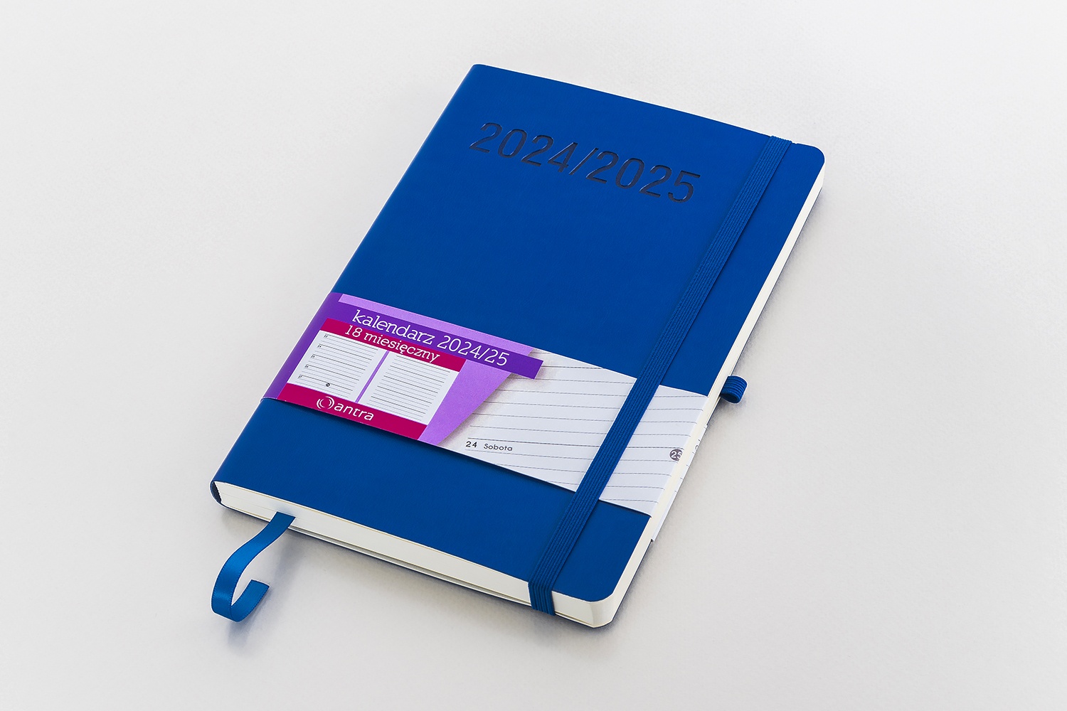 • Wnętrze kalendarza: skrócony kalendarz 2024-2026, notatnik - 1 strona, kalendarz 2024-2025 z miesiącami, ważne wydarzenia - 3 strony, plan roku 2024-2025, adresy od A do Z (po 2 litery na stronie), notatnik – 12 stron