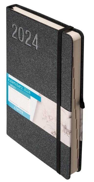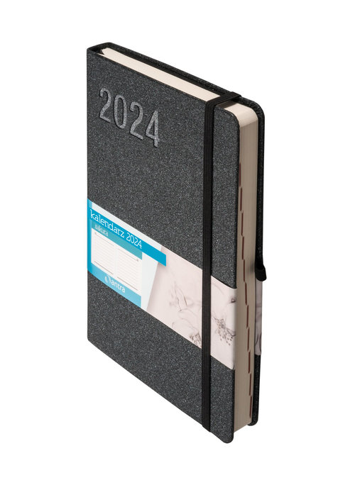 Kolekcja: Sakura Format: A5 Wymiary okładki: 210x145 mm Układ: dzień na stronie Ilość stron: 352 Oprawa: twarda Materiał: skóra ekologiczna, z błyszczącymi drobinkami Gramatura papieru: 80g Kolor papieru: off white Dodatki: plan roku 2024, ważne wydarzenia, plan miesiąca, skorowidz adresowy, notatki Pionowa gumka zamykająca: w kolorze okładki Wstążka: w kolorze okładki Gumka na długopis: w kolorze okładki Zaokrąglone rogi: tak Wyklejka: czarna Koperta: tak Dostępne kolory: czarny, granatowy, srebrny, szampański