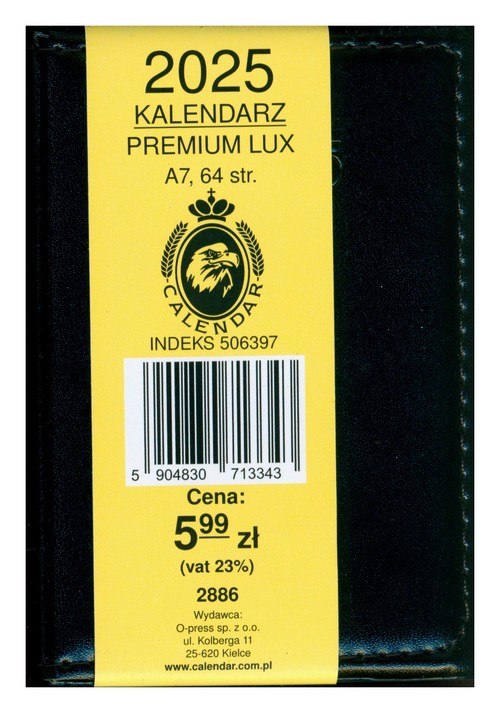 Kalendarz Kieszonkowy A7 Tygodniowy Premium Lux to niezastąpiony drobiazg, który zmieści się nawet w najmniejszej kieszeni. Ten mały, ale niezwykle praktyczny kalendarz to esencja funkcjonalności, umożliwiając Ci organizację dnia bez względu na to, gdzie jesteś. Z łatwością zapiszesz w nim swoje najważniejsze spotkania i zadania, a jego inteligentny układ pozwoli Ci na szybki dostęp do każdej potrzebnej informacji. Kompaktowa wytrzymałość: Mimo swoich niewielkich rozmiarów, kalendarz jest wyjątkowo wytrzymały. Twarda okładka zapewnia ochronę Twoich notatek i przetrwa codzienne użytkowanie. Styl i funkcjonalność: Prosty i elegancki design sprawia, że kalendarz jest stylowym dodatkiem do każdego zestawu, podkreślając Twój profesjonalizm i zmysł organizacji. Praktyczny układ: Kalendarz zawiera 64 stron w układzie tygodniowym, co pozwala na efektywne planowanie i zarządzanie czasem. Pomimo swoich kompaktowych wymiarów, zapewnia wystarczającą przestrzeń na zapisy i organizację. Mobilność i wygoda: Dzięki niewielkim rozmiarom, możesz mieć swój kalendarz zawsze pod ręką, bez względu na okoliczności. To doskonałe rozwiązanie dla tych, którzy pragną mieć swój czas zawsze pod kontrolą, gdziekolwiek się znajdują. Wybierz Kalendarz Kieszonkowy A7 Tygodniowy Premium Lux i ciesz się idealnym połączeniem mobilności, funkcjonalności i stylu. MIX - wysyłka losowa - czarny,brązowy,granatowy,czerwony Brak recenzjix