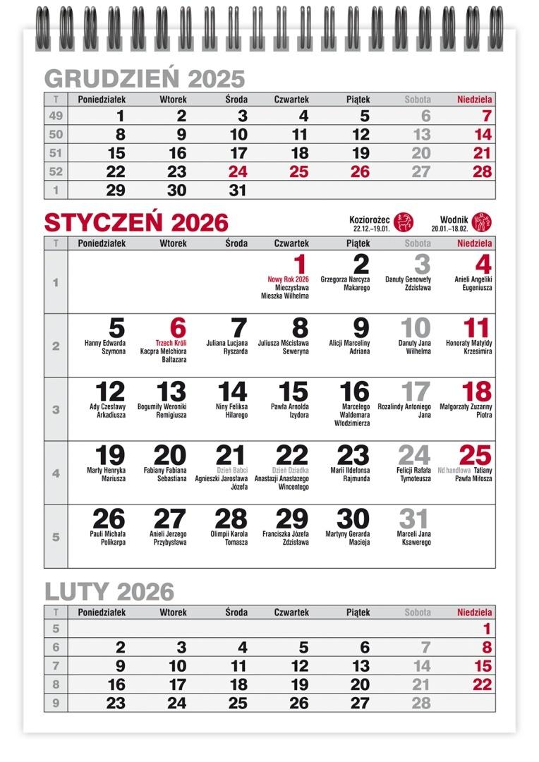 Kalendarz 2026 Biurkowy A5 TRÓJDZIELNY PIONOWY.