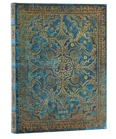 Kalendarz ekskluzywnej marki Paperblanks, Okładka przedstawiająca złote roślinne motywy na lazurowym tle, inspirowana oprawą XVII-wiecznej księgi liturgicznej, Każdy dzień jest na osobnej stronie, soboty i niedziele są razem, Oprawa twarda, Kalendarium w języku angielskim, W środku miejsce na notatki, roczny planer, oznaczone wybrane święta międzynarodowe, mini kalendarium, międzynarodowe numery telefonów, strefy czasowe, Kalendarz posiada 2 satynowe wstążki jako zakładki, Na końcu po wewnętrznej stronie okładki jest koperta na drobne notatki, wizytówki czy paragony oraz oraz mini skorowidz na adresy i telefony, Papier ekologiczny, bezkwasowy, gramatura 80, Zamknięcie na gumkę, Wymiary 18 x 23 cm, 416 stron Brak recenzjix