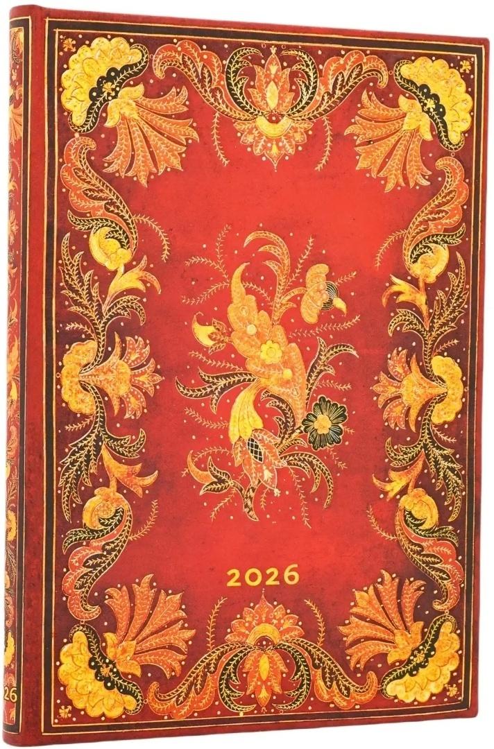 Kalendarz ekskluzywnej marki Paperblanks, Okładka jest reprodukcją francuskiego wydania Dekameronu z 1725 roku, Format Midi typu Horizontal - cały tydzień rozplanowany na 2 stronach, Oprawa twarda, Kalendarium w języku angielskim, W środku miejsce na notatki, roczny planer, oznaczone wybrane święta międzynarodowe, mini kalendarium, międzynarodowe numery telefonów, strefy czasowe, Kalendarz posiada 2 satynowe wstążki jako zakładki, Na końcu po wewnętrznej stronie okładki jest koperta na drobne notatki, wizytówki czy paragony oraz oraz mini skorowidz na adresy i telefony, Papier ekologiczny, bezkwasowy, gramatura 100, Zamknięcie na gumkę, Wymiary 13 x 18 cm, 160 stron Brak recenzjix