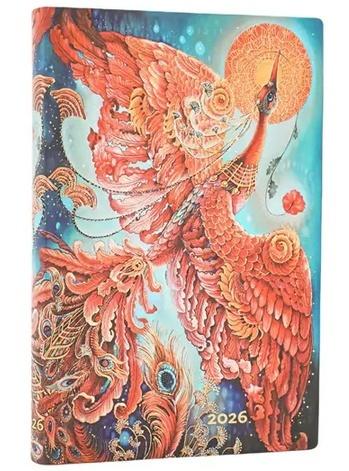 Kalendarz ekskluzywnej marki Paperblanks, Okładka inspirowana wykonanym w technice batikowej obrazem Nadieżdy Sokołowej, nawiązującym do rosyjskiej legendy o złotym ptaku, Format Mini typu Horizontal - cały tydzień rozplanowany na 2 stronach, Elastyczna oprawa i grzbiet, Kalendarium w języku angielskim, W środku miejsce na notatki, roczny planer, oznaczone wybrane święta międzynarodowe, mini kalendarium, międzynarodowe numery telefonów, strefy czasowe, skorowidz na adresy i telefony, Kalendarz posiada 2 satynowe wstążki jako zakładki, Na końcu po wewnętrznej stronie okładki jest koperta na drobne notatki, wizytówki czy paragony, Papier ekologiczny, bezkwasowy, gramatura 100, Wymiary 9,5 x 14 cm, 176 stron Brak recenzjix