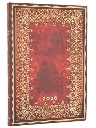 Kalendarz ekskluzywnej marki Paperblanks, Okładka inspirowana oryginalną skórzaną renesansową oprawą książki, Format Midi typu Horizontal - cały tydzień rozplanowany na 2 stronach, Elastyczna oprawa i grzbiet, Kalendarium w języku angielskim, W środku miejsce na notatki, roczny planer, oznaczone wybrane święta międzynarodowe, mini kalendarium, międzynarodowe numery telefonów, strefy czasowe, skorowidz na adresy i telefony, Kalendarz posiada 2 satynowe wstążki jako zakładki, Na końcu po wewnętrznej stronie okładki jest koperta na drobne notatki, wizytówki czy paragony, Papier ekologiczny, bezkwasowy, gramatura 100, Wymiary 12,5 x 17,5 cm, 176 stron Brak recenzjix