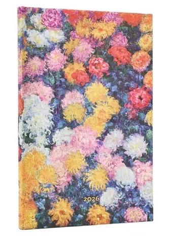Kalendarz ekskluzywnej marki Paperblanks, Okładka z reprodukcją słynnego obrazu Claude'a Moneta - Chryzantemy, Format Maxi typu Horizontal - cały tydzień rozplanowany na 2 stronach, Oprawa twarda, Kalendarium w języku angielskim, W środku miejsce na notatki, roczny planer, oznaczone wybrane święta międzynarodowe, mini kalendarium, międzynarodowe numery telefonów, strefy czasowe, Kalendarz posiada 2 satynowe wstążki jako zakładki, Na końcu po wewnętrznej stronie okładki jest koperta na drobne notatki, wizytówki czy paragony oraz oraz mini skorowidz na adresy i telefony, Papier ekologiczny, bezkwasowy, gramatura 100, Zamknięcie na gumkę, Wymiary 21 x 13,5 cm, 160 stron Brak recenzjix