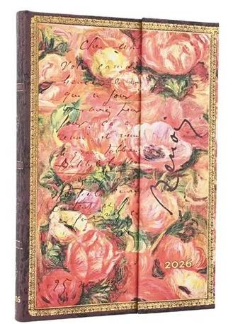 Kalendarz ekskluzywnej marki Paperblanks, Okładka z obrazem Augusta Renoire'a "Anemony" i fragmentem listu malarza do impresjonistki Berthe Morisot, Format Midi typu Horizontal - cały tydzień rozplanowany na 2 stronach, Oprawa twarda, Kalendarium w języku angielskim, W środku miejsce na notatki, roczny planer, oznaczone wybrane święta międzynarodowe, mini kalendarium, międzynarodowe numery telefonów, strefy czasowe, Kalendarz posiada 2 satynowe wstążki jako zakładki, Na końcu po wewnętrznej stronie okładki jest koperta na drobne notatki, wizytówki czy paragony oraz oraz mini skorowidz na adresy i telefony, Papier ekologiczny, bezkwasowy, gramatura 100, Zamknięcie na magnes, Wymiary 13 x 18 cm, 160 stron Brak recenzjix