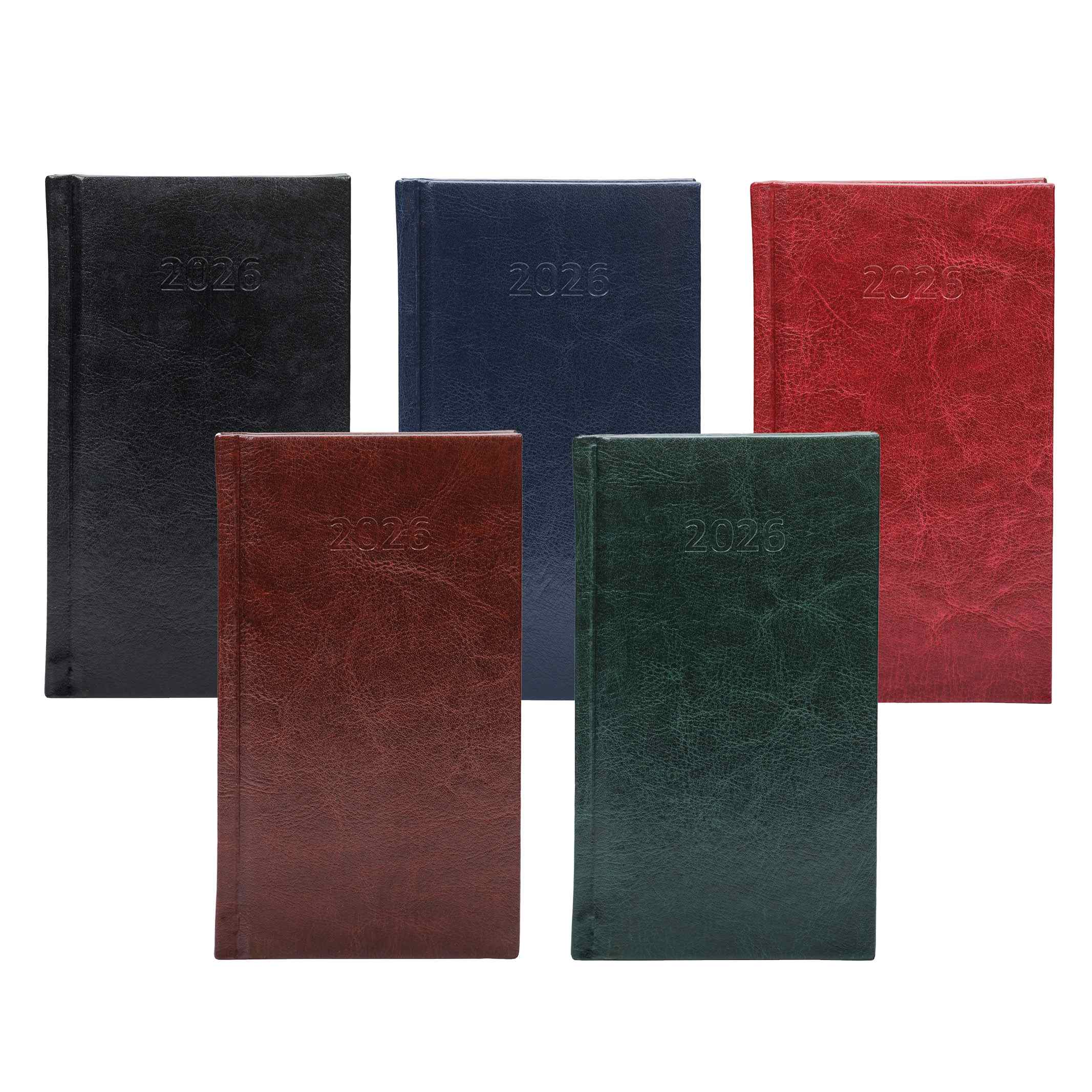 - Format 3/4 B6 (125x176x9 mm) - Ilość stron: 144 - Dostępne kolory: czarny, granatowy, bordo, zielony, brąz - Oprawa: twarda skóropodobna + gąbka - Układ środka: 4 dni na jednej stronie, 3 dni na drugiej - Wewnątrz tasiemka do oznaczania stron ułatwia odnajdywanie ważnych notatek lub ostatnio zapisanej strony - Papier: 70 g/m2 w kolorze ecru - Kalendarium: w języku polskim, angielskim, numeracja dni i tygodni, podwójne imieniny - Część informacyjna: strony na notatki, telefony kierunkowe, skorowidz alfabetyczny, daty imienin i Świąt.