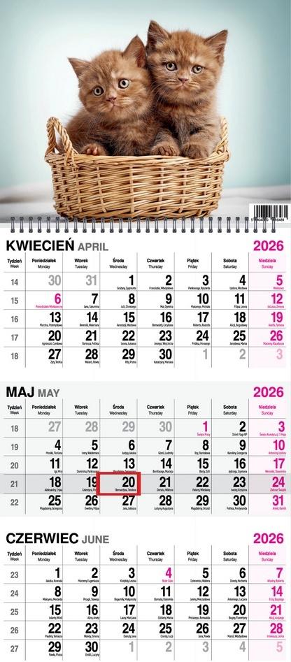 Kalendarz 2026 trójdzielny na spirali KotyNie ma jeszcze oceny, możesz być pierwszym, który ocenił!