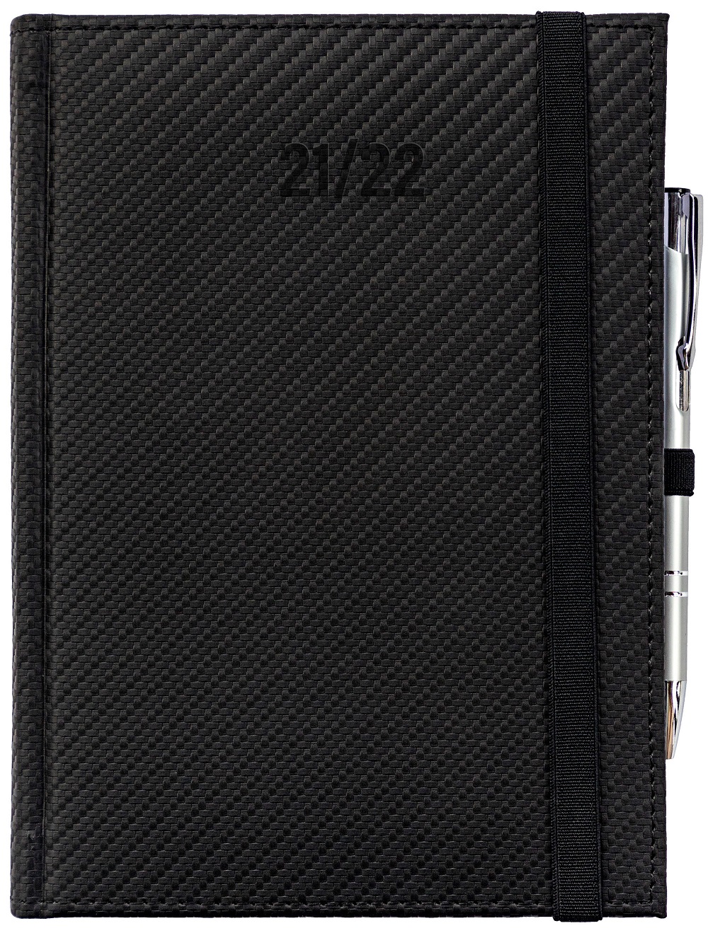 Kalendarz A5 dzienny nauczyciela w oprawie Carbon z gumką. 368 stron. Papier biały. Format bloku 143x204 mm. Druk szaro- bordowy. Kalendarium od 12.07.21 do 04.09.22 r. Rozbudowana część informacyjna z tabelami przydatnymi w pracy pedagoga. Długopis za dodatkową opłatą.