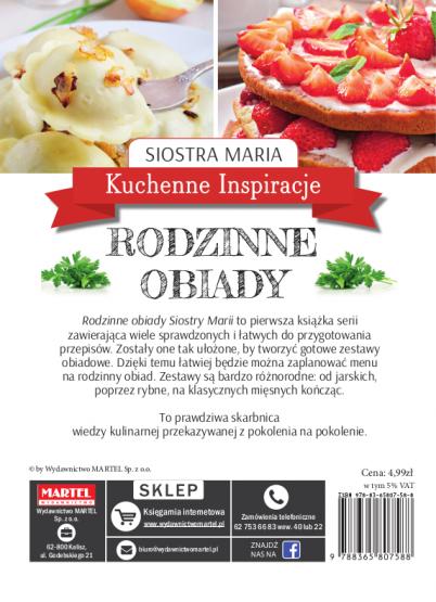 Kuchenne Inspiracje Siostry Marii to seria tematycznych poradników kulinarnych. Każdy tom zawiera ok. 50 receptur na zdrowe i łatwe do przygotowania potrawy. Przepisy siostry Marii nie wymagają specjalnych umiejętności, z pewnością znajdą wielu amatorów, a wszystkie dania można bez trudu przygotować w domowych warunkach z ogólnie dostępnych produktów. Dzięki dokładnym wskazówkom opatrzonym pięknymi zdjęciami uda się przyrządzić każdą potrawę!