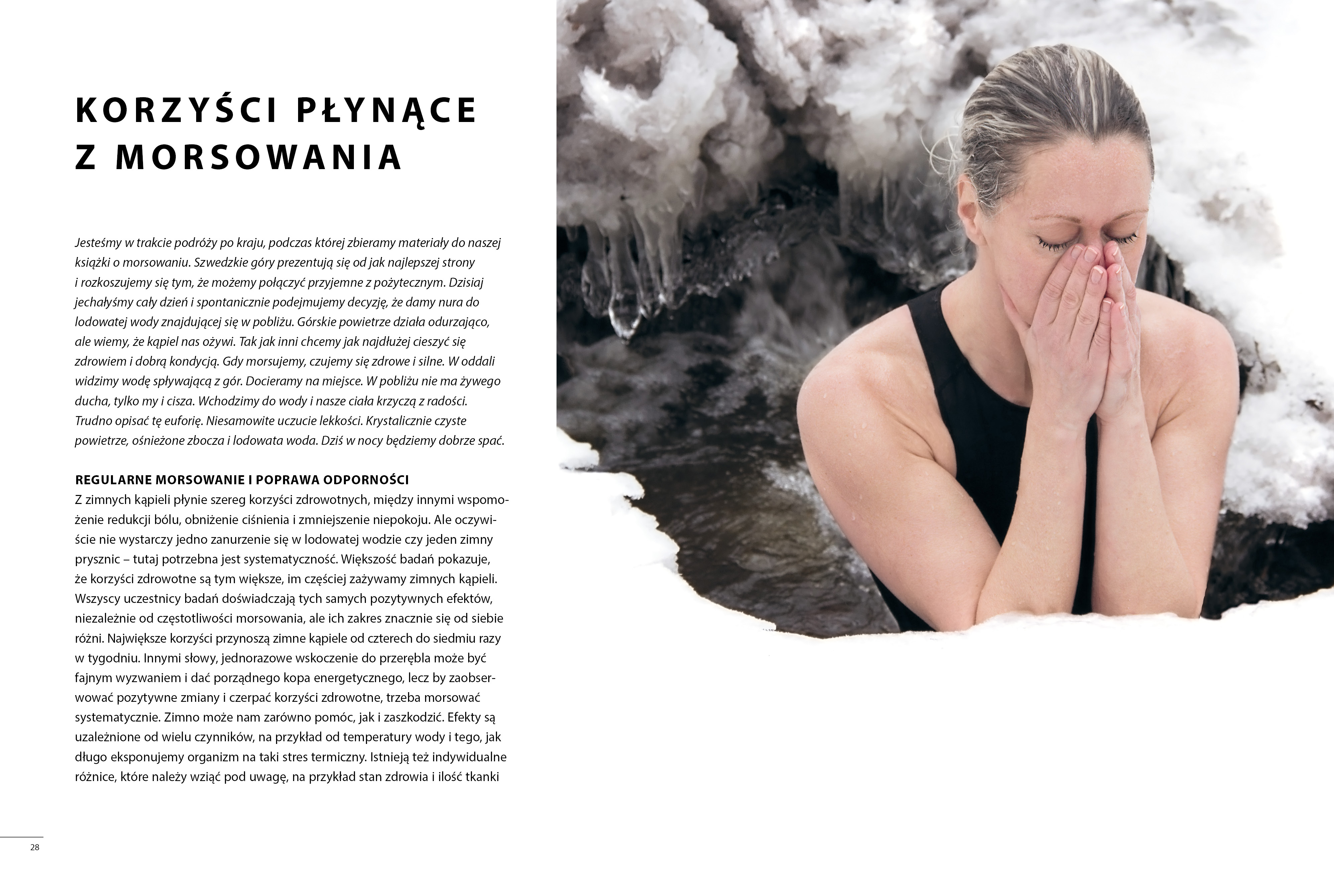 Od czego zacząć morsowanie? Jak fizycznie i psychicznie przygotować się na szok termiczny? Jak długo pozostawać w wodzie? Czy zanurzać głowę? W jaki sposób szybko rozgrzać się po wyjściu z wody? Praktyczny poradnik, który trzymasz w rękach zawiera odpowiedzi na wszystkie te pytania. Linda Ahlgren i Linda Vagnelind to szwedzkie ekspertki, dla których morsowanie to nie tylko aktywność fizyczna, ale przede wszystkim styl życia i sposób na obcowanie z naturą. Autorki dają cenne, praktyczne rady wynikające z lat doświadczenia w morsowaniu, pomagają osiągnąć maksymalne korzyści z lodowatych kąpieli i inspirują do pozytywnych zmian. Efekty regularnego morsowania to między innymi: POPRAWA ODPORNOŚCI i SAMOPOCZUCIA oraz OBNIŻENIE STRESU ZŁAGODZENIE BÓLU oraz LEPSZY SEN NIŻSZE CIŚNIENIE i LEPSZA PRZEMIANA MATERII SZYBSZA REGENERACJA i MNIEJSZE ZAKWASY ZDROWSZE SERCE, a dzięki temu DŁUŻSZE ŻYCIE Lodowate kąpiele to inny niż wszystkie poradnik zdrowotny dla tych, którzy pragną doświadczyć czegoś niezwykłego. Brak recenzjix