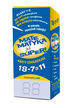 Karty edukacyjne Matematyka Jest Super: Uczą odejmować, Ćwiczą pamięć, Uczą logicznego myślenia, Pomagają przygotować się do klasówek, Rozwijają wyobraźnię. Sprawdź swoją wiedzę matematyczną! Wykonaj działanie, włóż kartę do czytnika na pudełku, a zobaczysz prawidłową odpowiedź. Potem odwróć kartę i rozwiąż pozostałe działania. Wynik wpisz dołączonym pisakiem. Poprawną odpowiedź znajdziesz na karcie wskazanej pod działaniem. Pomyliłeś się? Nie szkodzi. Zetrzyj błędny wynik i spróbuj raz jeszcze.