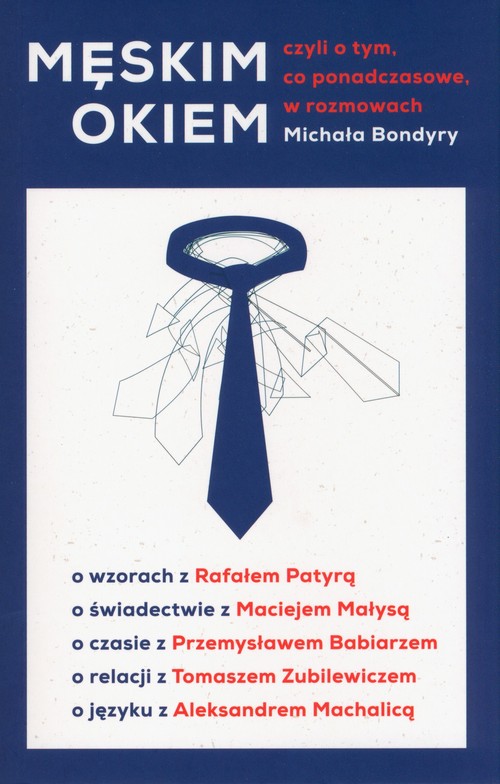 Książka składa się z pięciu wyjątkowych wywiadów, bohaterami których są znani medialnie mężczyźni. Każda rozmowa skupiona jest wokół jednego z ważnych współczesnych tematów. Są to: relacje, czas, wzorce, świadectwo i język. Autor zaprasza nas do wspólnego odkrywania świata Aleksandra Machalicy, Macieja Małysa, Przemysława Babiarza, Rafała Patyry i Tomasz Zubilewicza. (fragment wstępu) Wywiady ze znanymi w medialnym świecie mężami i ojcami są jak kolejne etapy dochodzenia do prawdziwej, dojrzałej męskości, wyrażającej się w odpowiedzialnym ojcostwie. Są jak etapy wiązania krawata, kiedy to musisz wykonać określone kroki, żeby uzyskać finalny efekt. Punktem wyjścia wszystkich wywiadów jest kryzys męskości i szerzej kryzys moralny, tożsamościowy, który dotyka większości rodzin i relacji między jej członkami. Autor stawia ważne pytania: Czym jest ojcostwo? Na jakich fundamentach należy budować zdrową rodzinę? Jakie wartości przekazywać dzieciom? Kto może stanowić dobry wzór do naśladowania? Kim jest dzisiaj mężczyzna? Czy potrafimy go zdefiniować? Pięciu mężczyzn znanych ze szklanego ekranu, desek teatralnych oraz aren sportowych - mężów i ojców - odpowiada na postawione pytania oraz rozmawia z autorem na temat tego, jak dawać świadectwo wiary w trudnym środowisku show-biznesu, o wadze rodziny, o tym, jak cenne jest ojcostwo oraz o tym, jak budować relacje z żoną i dziećmi mimo permanentnego braku czasu. Brak recenzjix