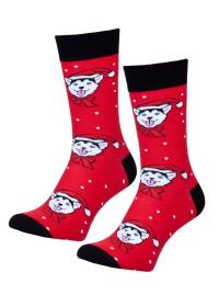 Milena Skarpetki męskie długie husky czerwone świąteczne