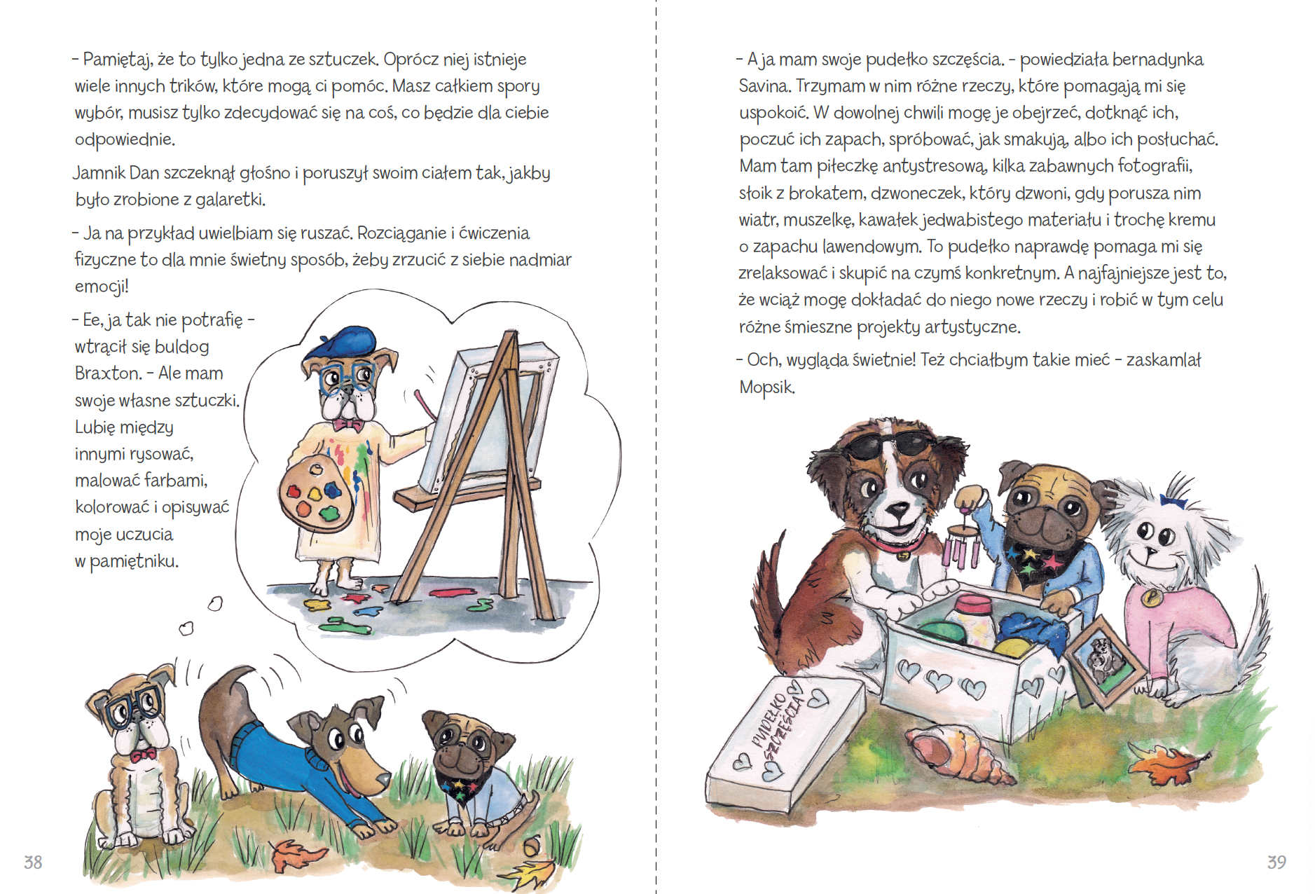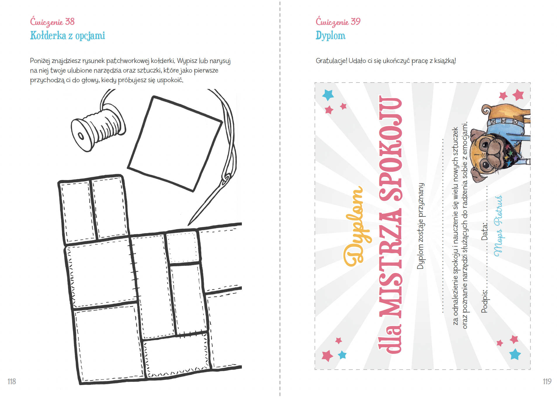 Przygotujcie się na rewolucję - Dr Karen Treisman otwiera drzwi do nowego wymiaru wsparcia emocjonalnego dziecka - opartego na przekonaniu, że każde dziecko jest jak klejnot, a my mamy klucz do stworzenia indywidualnej, dedykowanej tylko mu skrzyni pełnej wsparcia. Uczy, jak sięgać do głębi dziecięcego doświadczenia i razem z maluchem stworzyć spersonalizowaną strategię przywracania wewnętrznego poczucia bezpieczeństwa i spokoju. Podręcznik ten, stworzony z myślą o dzieciach przeżywających stres, niepewność, lęki, frustracje, przeciążenie lub częste zmartwienia, ma na celu dostarczyć setki pomysłów, opartych na rozmaitych podejściach, aby stworzyć wielopoziomowy plan wsparcia dopasowany do potrzeb dziecka. Na początku autorka zaprasza Czytelników w kojącą podróż relaksacyjną. Mopsik Piotruś uczy się korzystać z mocy wyobraźni, by ukoić swoje emocje w trudnych chwilach. „Piotruś poczuł, że trawa pod jego stopami jest miękka i sprężysta jak trampolina, a niektóre liście wyglądają jak serduszka swobodnie unoszące się w powietrzu”. Poznajemy przyjaciół Mopsika - różnej rasy psiaki - każdy zwierzak z własnym sposobem na trudne emocje. Potem odnajdujemy swoje bezpieczne miejsce, zarówno te realne, jak i wyimaginowane. Znajdujemy sposoby, by zrozumieć i przetworzyć trudne doświadczenia i - dla zachowania równowagi - celebrujemy też te szczęśliwe i wyjątkowe wspomnienia, aby wzmocnić zasoby dziecka. Podręcznik zawiera pomysły na robótki ręczne, inspirujące ćwiczenia i karty pracy, które umożliwiają dzieciom zgłębienie idei przedstawionych w opowieści relaksacyjnej. Na końcu znajduje się narzędziownik dla rodziców, opiekunów i profesjonalistów wspierających dzieci w wieku od 5 do 10 lat. To druga przetłumaczona na język polski książka dr Karen Treisman - wysoko wyspecjalizowanej psycholożki klinicznej wyróżnionej Orderem Imperium Brytyjskiego (MBE). Brak recenzjix