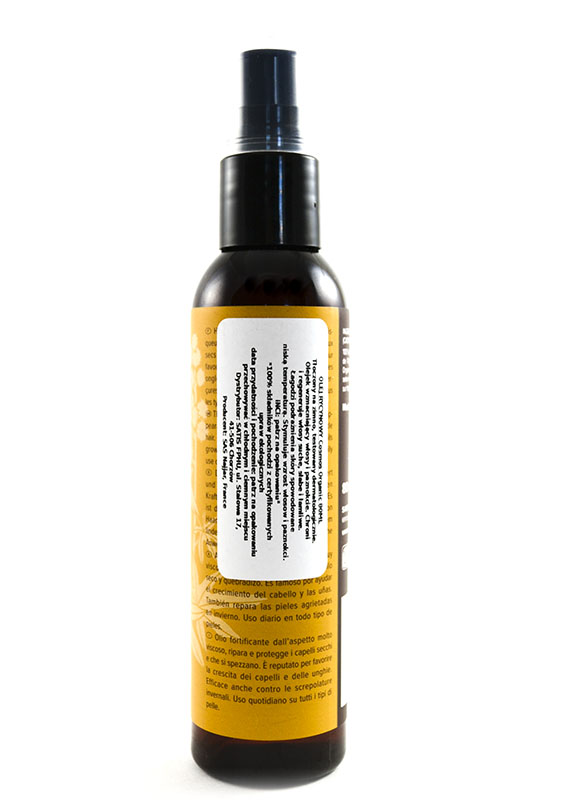 NAJEL Olej rycynowy 80mlBio czysty olejek rycynowy tłoczony na zimno.Olej rycynowy Najel przeznaczony do włosów, skóry oraz paznokci. Jego dobra sława sięga Starożytnego Egiptu - Kleopatra używała olejku do demakijażu. Olej rycynowy posiada działanie wzmacniające. Regeneruje i chroni włosy suche, zniszczone, łamliwe. Znany jest ze swojego skutecznego działania stymulującego wzrost włosów, rzęs i paznokci. Jest skutecznym kosmetykiem w regeneracji i odżywieniu skóry podrażnionej temperaturą: mrozem, wiatrem, czynnikami zewnętrznymi. Olej posiada gęstą, treściwą konsystencję. Jest idealnym składnikiem mieszanek do OCM. Zastosowanie: włosy - jako maska przed myciem, wzmacnia i pobudza włosy do wzrostu, dłonie - łagodzi podrażnienia, odżywia pękniętą za sprawą zimna skórę, idealny do każdego typu skóry, paznokcie - aplikować za pomocą pędzelka lub bezpośrednio na paznokcie, odżywia i pobudza ich wzrost rzęsy - po demakijażu aplikować za pomocą patyczka kosmetycznego na linii rzęs Skład:INCI: ricinus communis (castor) seed oil**składnik pochodzi z certyfikowanych upraw ekologicznych ECOCERT pozyskany na drodze etycznego handlu od małych wytwórców z Indii certyfikat: Cosmos Organic by Ecocert