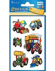 Naklejki papierowe w kształcie pojazdów rolniczych.
