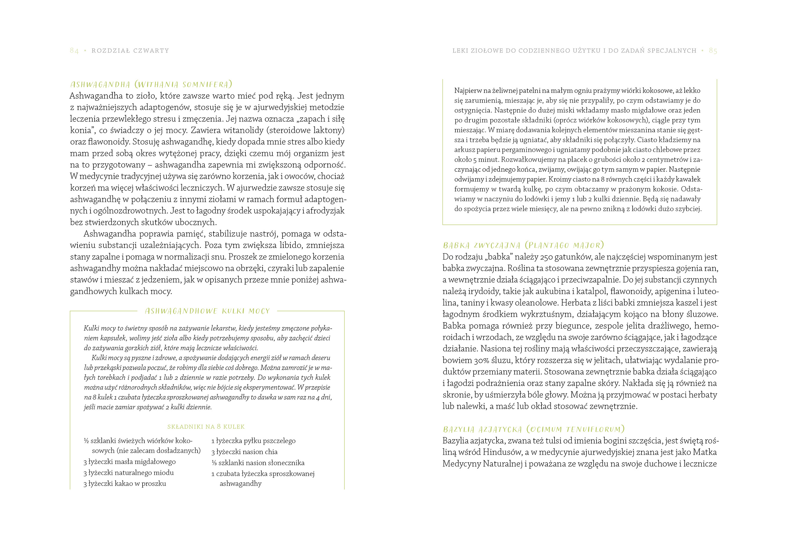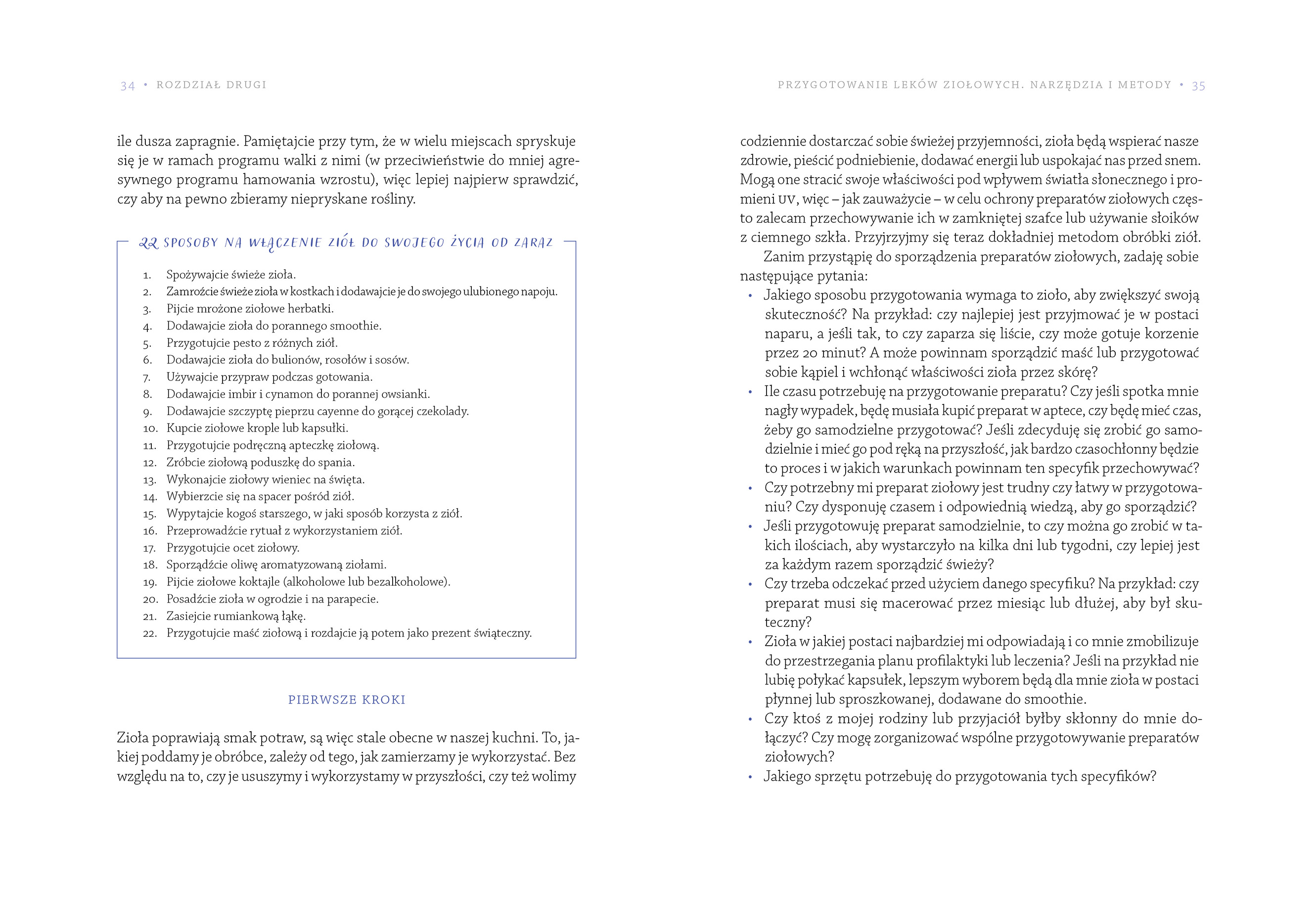 Wykorzystaj moc roślin dla zdrowia i urody. Stwórz proste mieszanki przypraw i ziół, dzięki którym twoje życie odzyska naturalny rytm. Koktajl na bazie olejku konopnego pomoże ci pokonać PMS, a napój z ananasa uszczęśliwi jelita. Zioła ochronią cię przed infekcjami, wyregulują hormony i zregenerują twój organizm. Zaopiekuj się sobą od zaraz! Dr Leslie Korn, zielarka i klinicystka, łączy osiągnięcia nauki z rdzenną mądrością kobiet i wiedzą o roślinach. W tej książce znajdziesz: proste przepisy na koktajle, napoje i napary z użyciem ziół oraz przypraw, receptury na naturalne pastylki i syropy wzmacniające odporność, domowe kosmetyki: balsamy, płyny do kąpieli, odświeżacze powietrza. Praktyczny, wszechstronny przewodnik, jak wykorzystać zioła, rdzenną mądrość kobiet i sekrety kuchni, by odzyskać energię duchową i radość życia. dr Kelly Brogan, autorka bestsellerowej Prawdy o kobiecej depresji Autorka umiejętnie równoważy swoją encyklopedyczną wiedzę o zdrowiu i lekach z głębokim szacunkiem do wszystkich istot. Lektura obowiązkowa dla kobiet szukających naturalnej drogi do zdrowia. dr James Lake, członek American Psychiatric Association Caucus on Complementary and Integrative Medicine Powyższy opis pochodzi od wydawcy Brak recenzjix