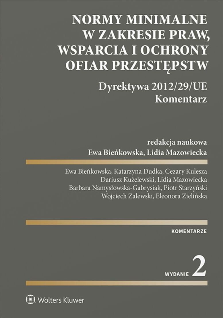 Państwa członkowskie, w tym Polska, od 16 listopada 2015 r. są zobowiązane do stosowania przepisów dyrektywy Parlamentu Europejskiego i Rady 2012/29/UE ustanawiającej normy minimalne w zakresie praw, wsparcia i ochrony ofiar przestępstw. Mimo to polskie regulacje prawne nie spełniają jej wszystkich wymogów. Komentarz do przepisów tego aktu jest wskazówką, jak je zmienić, aby tę zgodność osiągnąć. Unormowanie uprawnień i umożliwienie ofiarom przestępstw korzystania z nich w praktyce - co wielokrotnie podkreślano w dyrektywie - służy łagodzeniu bezpośrednich skutków przestępstwa, a przede wszystkim przeciwdziałaniu dalszym, pośrednim jego następstwom, które są efektem niewłaściwego traktowania ofiar i lekceważenia ich potrzeb (wiktymizacja wtórna), oraz zapobieganiu aktom zastraszania i zemsty ze strony sprawców i ich otoczenia społecznego, mających często postać zachowań przestępczych. Drugie wydanie publikacji uwzględnia zmiany wprowadzone np: ustawami: z 28 lipca 2023 r. o zmianie ustawy - Kodeks rodzinny i opiekuńczy oraz niektórych innych ustaw, która określa szczególne środki ochrony przeciwdziałające zagrożeniom przestępczością na tle seksualnym i szczególne środki ochrony małoletnich; z 13 stycznia 2023 r. o zmianie ustawy - Kodeks postępowania cywilnego oraz niektórych innych ustaw wprowadzającą zapisy mające chronić przed wtórną wiktymizacją pokrzywdzonych i zapobiegać jej. Publikacja będzie przydatna dla prawników praktyków (adwokatów, sędziów, prokuratorów), funkcjonariuszy Policji, kuratorów, pracowników administracji samorządowej, organizacji pozarządowych oraz przedstawicieli nauki zajmujących się sprawami ofiar przestępstw. Brak recenzjix