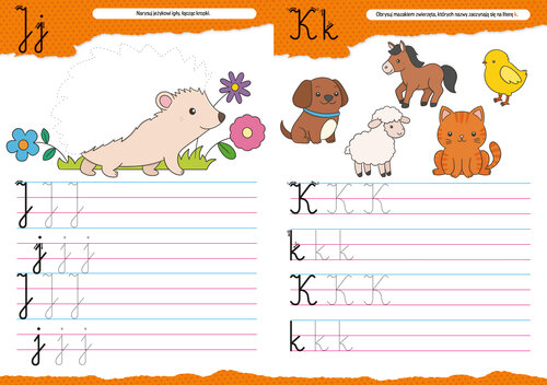 Przyjazne ilustracje oraz ciekawe zadania zachęcają do nauki PISANIA LITEREK.