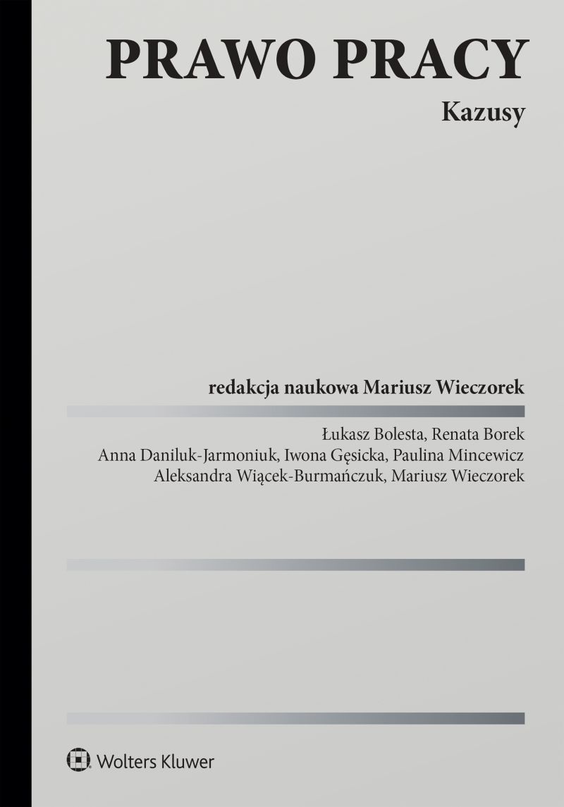 Książka zawiera 78 kazusów z prawa pracy, które mogą być wykorzystywane nie tylko przez studentów prawa, ale także aplikantów radcowskich i adwokackich. Opracowanie dzieli się na części, w których zaprezentowano kazusy dotyczące: 1) źródeł prawa pracy (kodeks pracy, regulaminy wynagradzania, układy zbiorowe pracy), 2) zasad prawa pracy (zakaz dyskryminacji), 3) stron stosunku pracy (pracodawca będący osobą fizyczną, spółką cywilną), 4) podstaw nawiązania stosunku pracy (m.in. mianowanie, powołanie, wybór, pracownicy tymczasowi), 5) nawiązania umownego stosunku pracy, 6) rozwiązania umownego stosunku pracy (za porozumieniem stron, przyczyna i termin wypowiedzenia, rozwiązanie umowy bez wypowiedzenia), 7) roszczeń w razie wadliwego rozwiązania umowy o pracę, 8) obowiązków stron stosunku pracy, 9) odpowiedzialność pracownicza, 10) wynagrodzenia za pracę, 11) czasu pracy, 12) urlopów pracowniczych, 13) uprawnień pracowników związanych z rodzicielstwem.