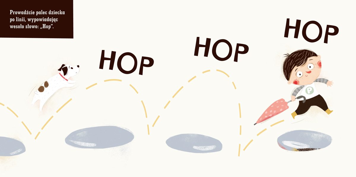 Pucio wprowadza dzieci w świat mowy! Na kartach tej małej książeczki znajdziecie swojego ulubionego bohatera wykonującego czynności, które cieszą każdego malucha, a wszystko to w połączeniu z dźwiękami ważnymi dla początków rozwoju mowy: samogłoskami, prostymi sylabami i onomatopejami. Pucio zaprasza do wspólnej zabawy! Oglądajcie ilustracje i dotykajcie ich, odczytując zapisane na nich dźwięki. Powtarzajcie razem z dzieckiem gesty wykonywane przez Pucia (możecie pomóc maluchowi, kierując jego ręką). Wyraźnie intonujcie i zabarwiajcie emocjonalnie swoje wypowiedzi, bo to zwraca uwagę dziecka i zachęca je do naśladowania. Więcej wyrażeń dźwiękonaśladowczych, które są ważnym elementem rozwoju mowy, znajdziecie w książce "Pucio uczy się mówić". Dr n. hum. Marta Galewska-Kustra - mama, logopedka i pedagożka dziecięca, pedagożka twórczości, pisarka. Zajmuje się rozwijaniem kreatywności oraz terapią opóźnionego rozwoju mowy i wad artykulacyjnych u dzieci. Wieloletnia pracowniczka naukowa Akademii Pedagogiki Specjalnej im. Marii Grzegorzewskiej w Warszawie. Autorka bestsellerowej serii książek wspierających rozwój mowy dziecka "Uczę się mówić, wymawiać, opowiadać". Każdą wolną chwilę poświęca na spisywanie nowych przygód, które dyktują jej mucha Fefe i Pucio. Od 2018 roku mama małego Krasnala. Joanna Kłos ukończyła grafikę na Akademii Sztuk Pięknych w Krakowie, dyplom obroniła w Pracowni Projektowania Plakatu. Przez kilkanaście lat pracowała jako graficzka, by wreszcie zostawić "pracę na etacie" i zająć się ilustracją. Wspólnie z siostrą prowadzi pracownię lalek Kalikayo. Uwielbia czekoladę z pomarańczą i piesze wyprawy ze swoimi psami. Powyższy opis pochodzi od wydawcy. Brak recenzjix
